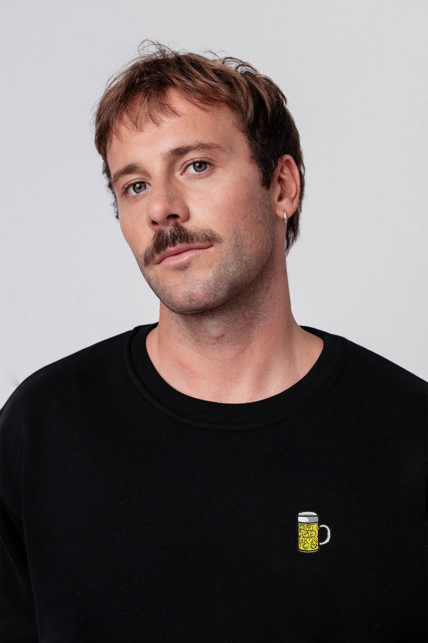 Bestickter Bio Baumwoll Unisex Pullover mit schwerem Stoff (320gsm) und gesticktem Maßkrug Design