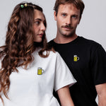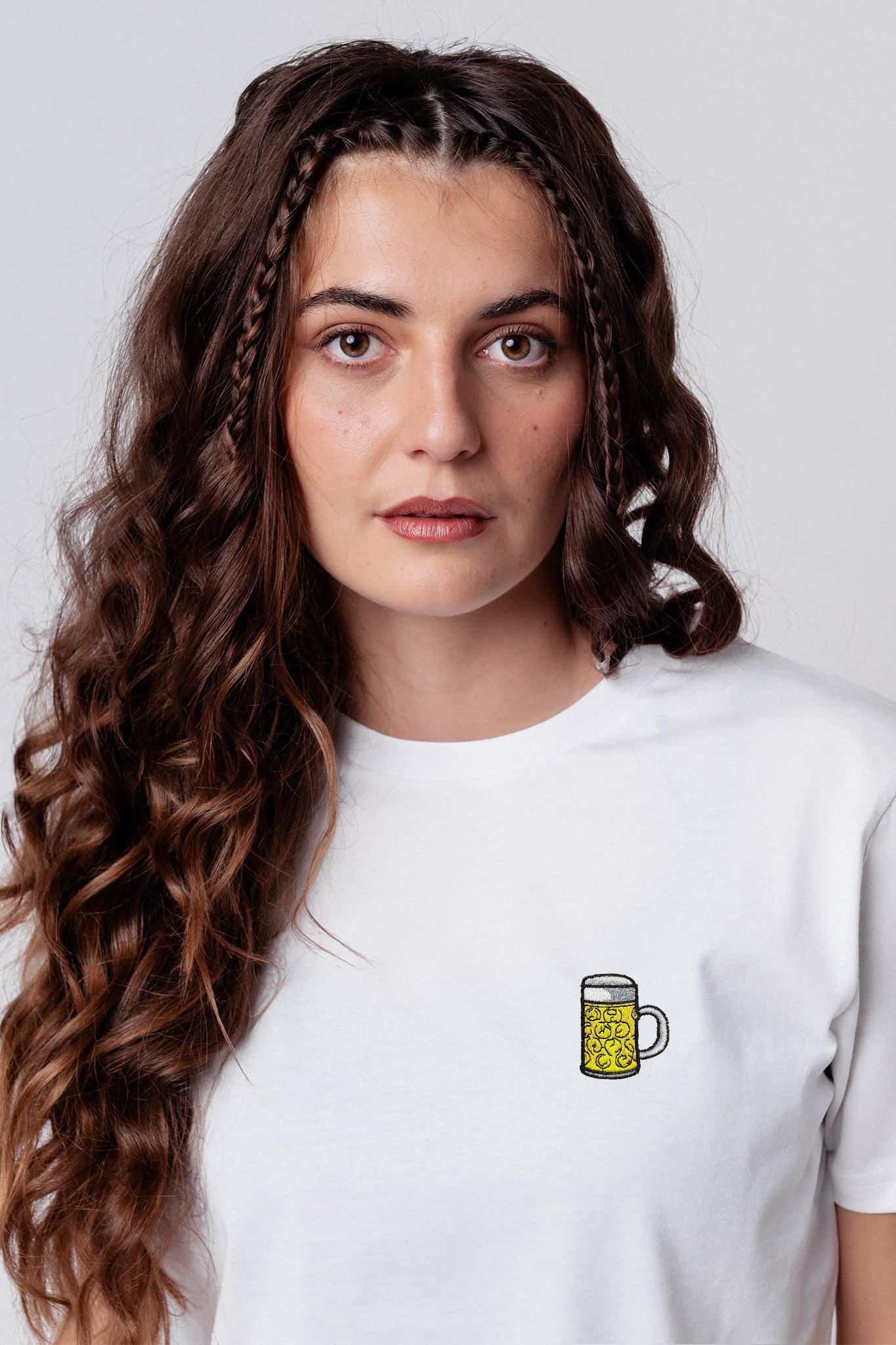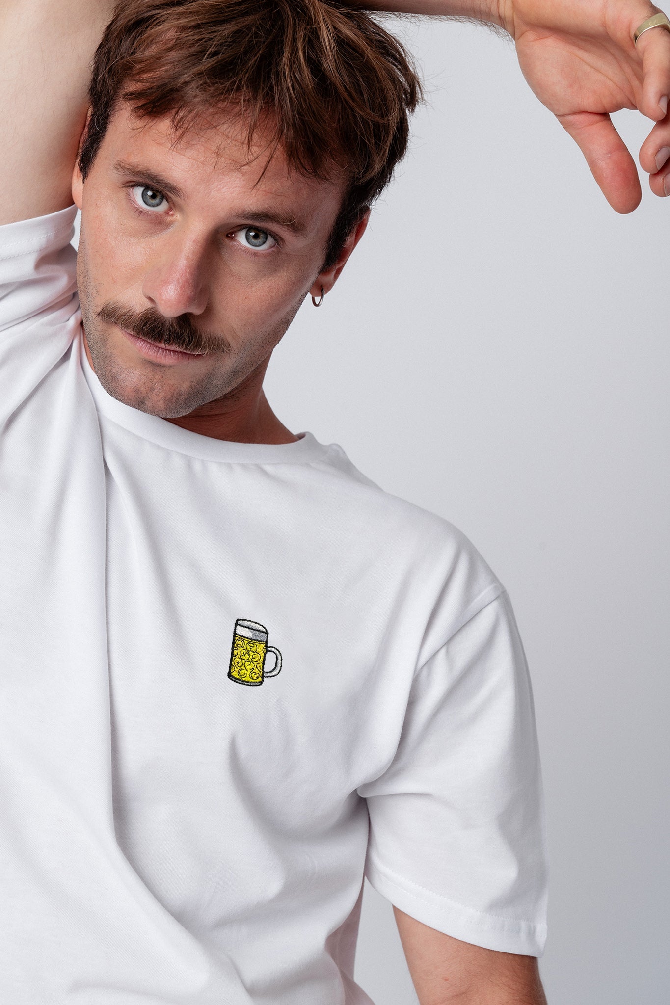Besticktes  Bio Baumwoll Unisex T-Shirt mit schwerem Stoff (190gsm) und gesticktem Maßkrug Design