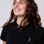 Besticktes Bio Baumwoll Frauen T-Shirt mit extrem angenehmen Stoff (155gsm) und offiziell gesticktem Original Fies Schwarzwälder Kirschwasser Design