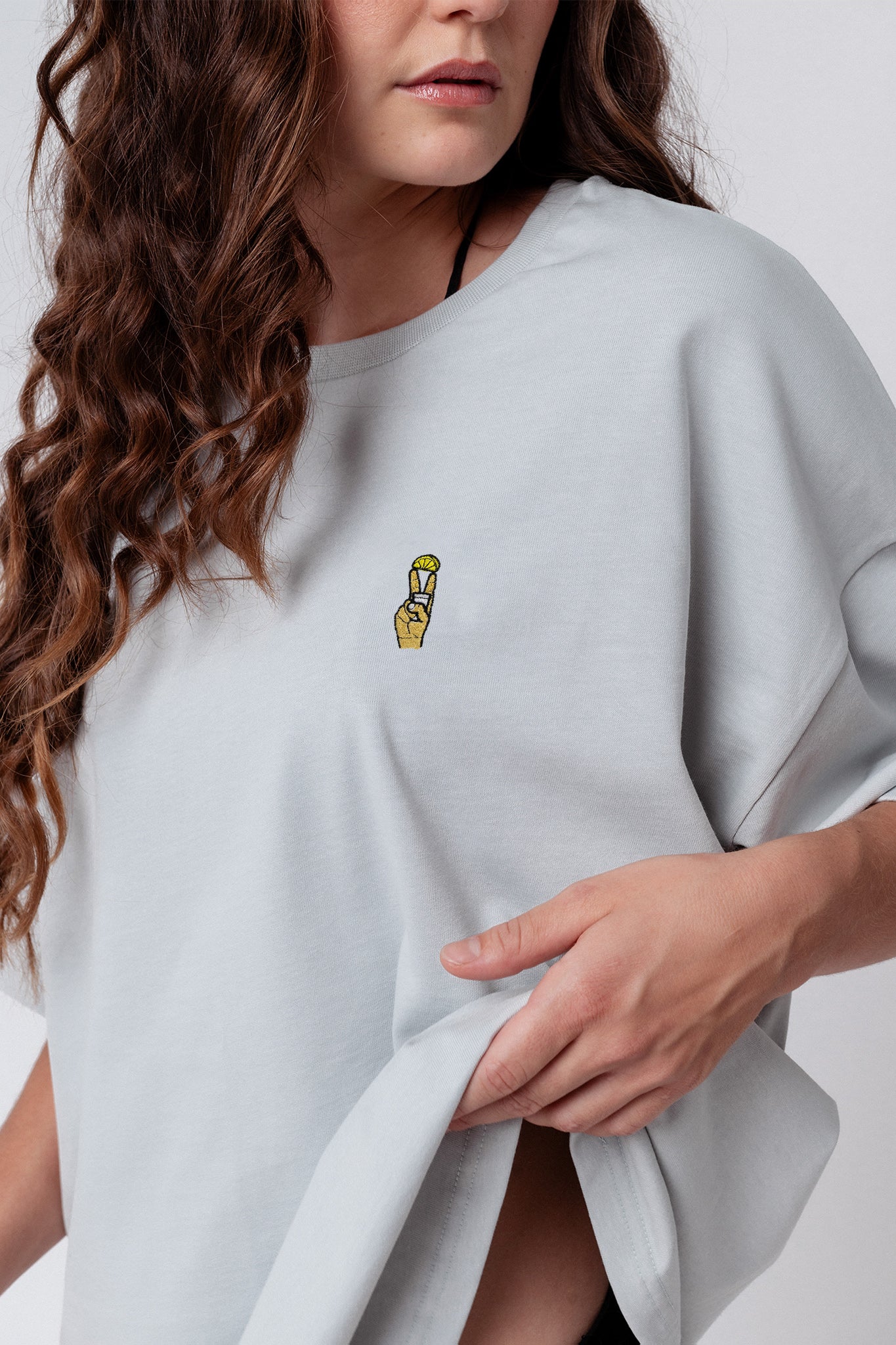 Heavy Oversized Bio Baumwoll T-Shirt mit extra schwerem Stoff (230gsm) und dem gestickten Tequila Shot Design