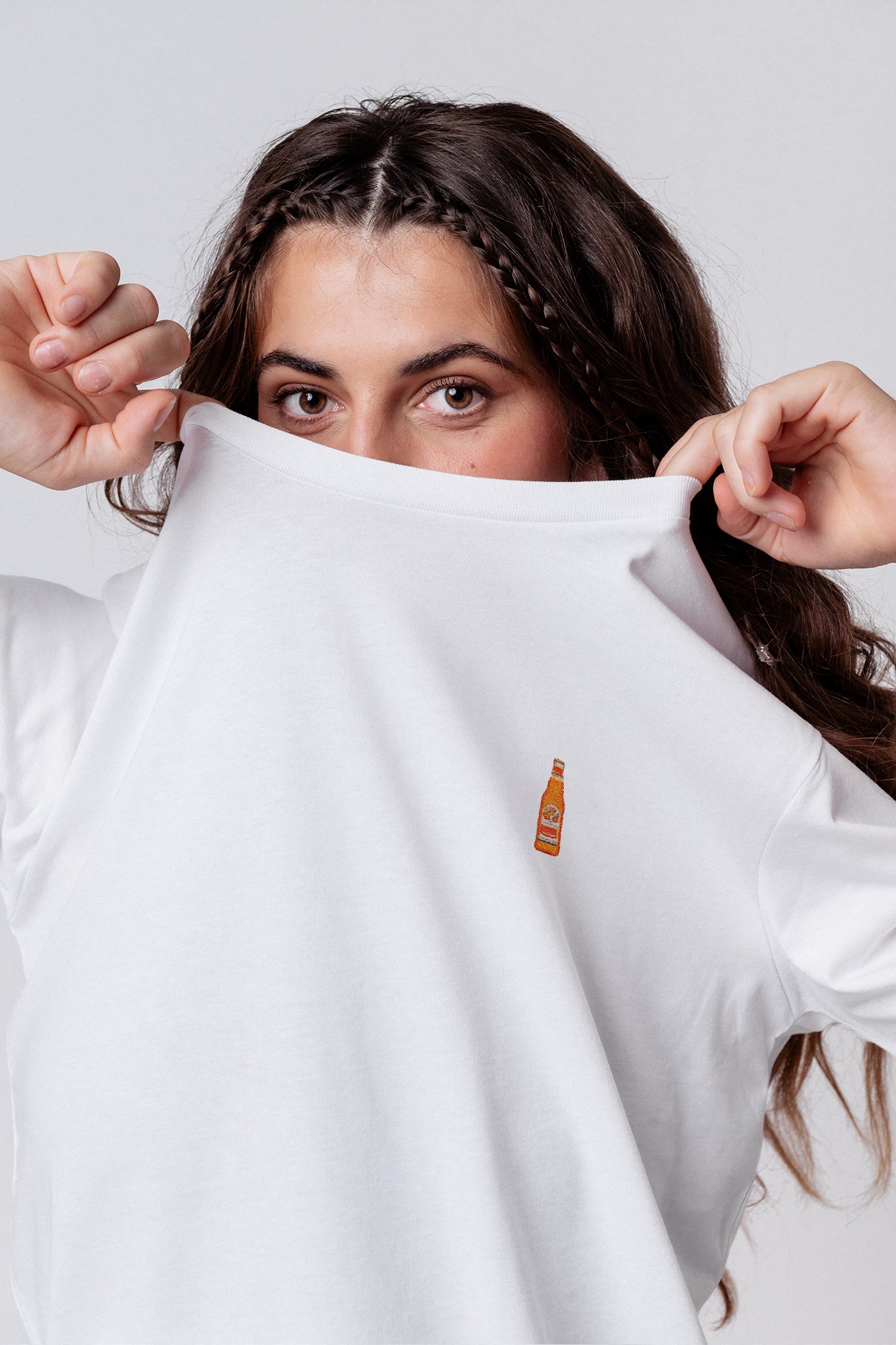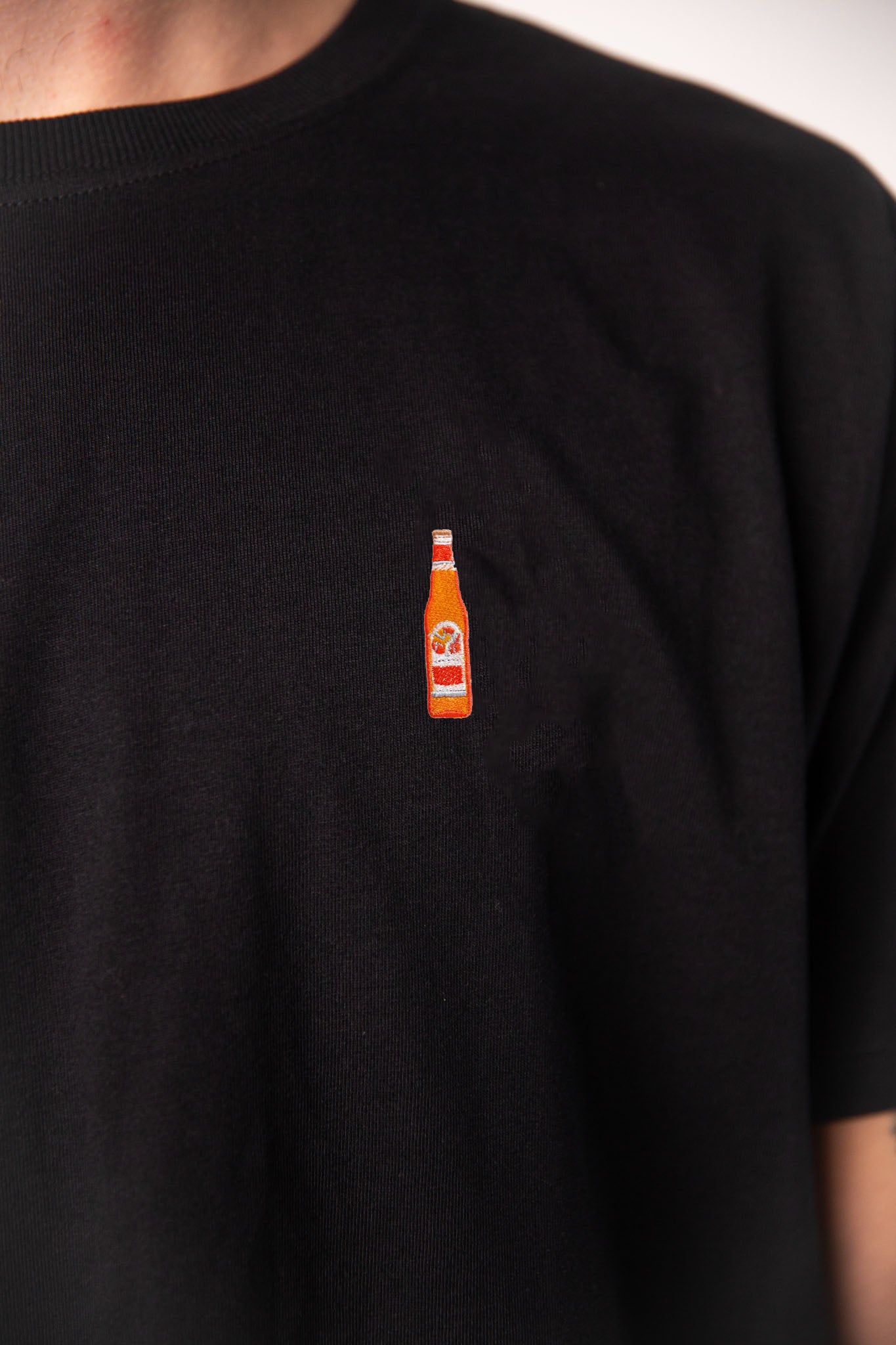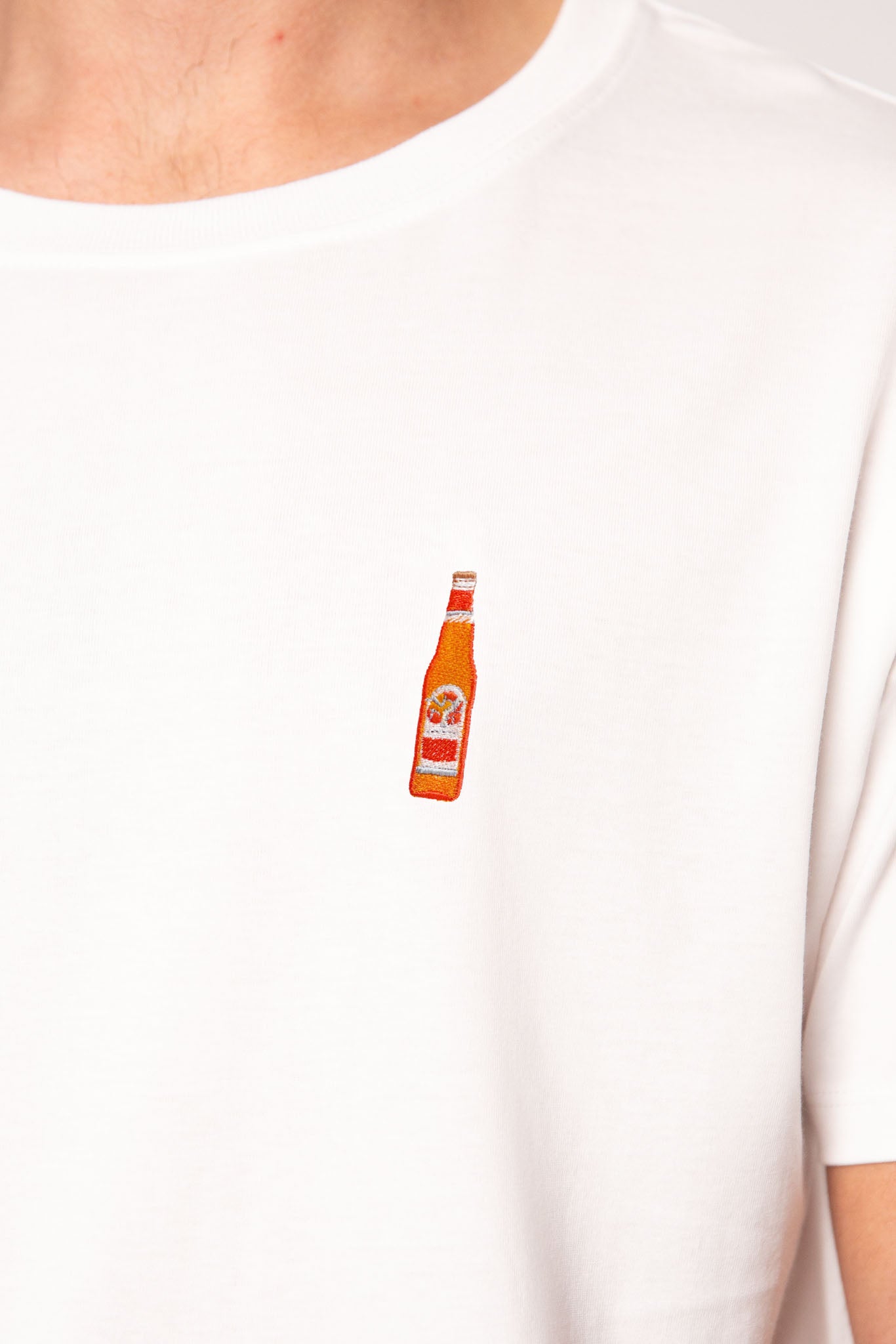 Besticktes Bio Baumwoll Unisex T-Shirt mit schwerem Stoff (190gsm) und der offiziellen gestickten Somersby Orange Spritz Bottle