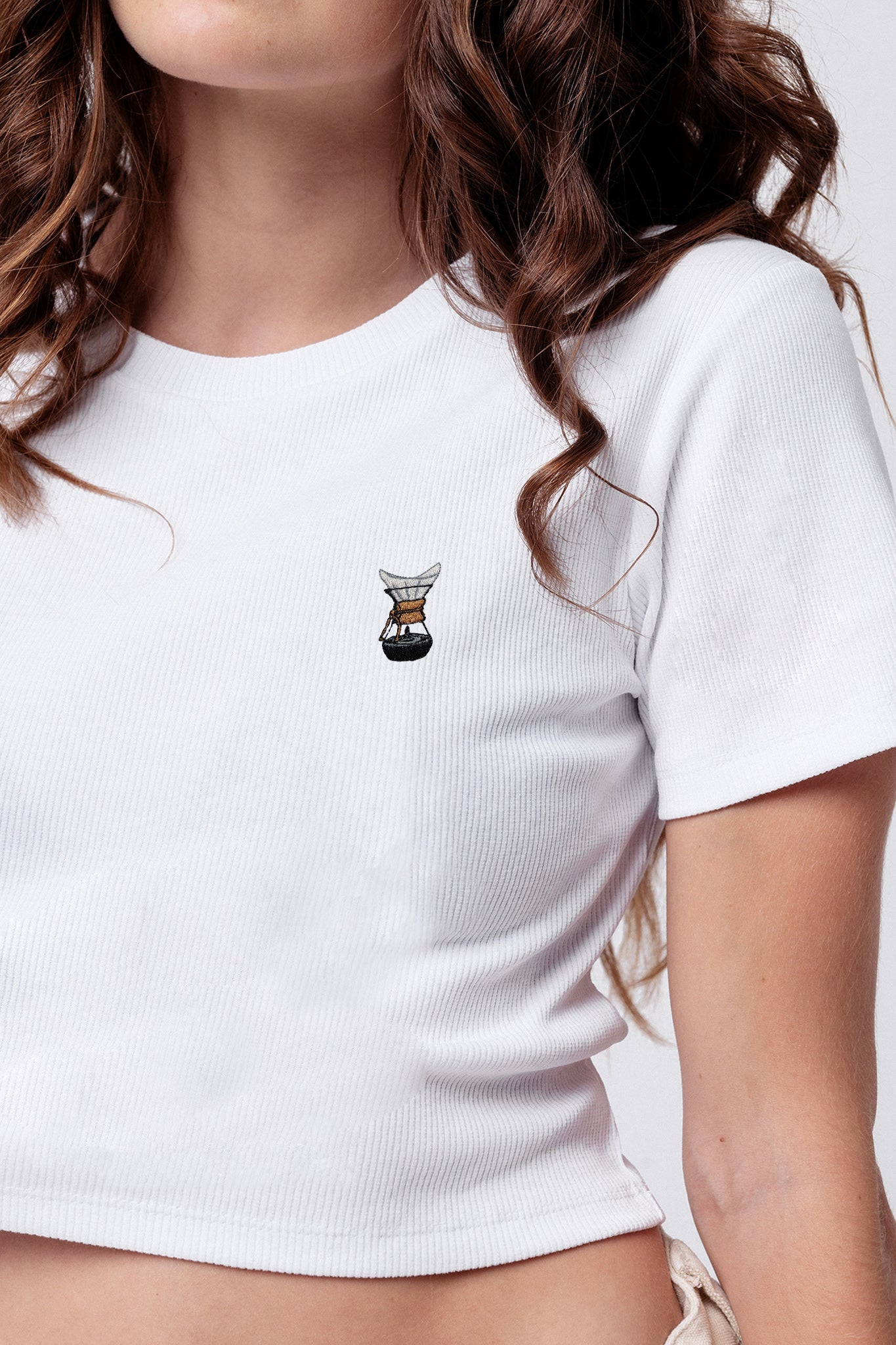 Sophisticated Filter | Besticktes Bio Baumwoll Cropped T-Shirt