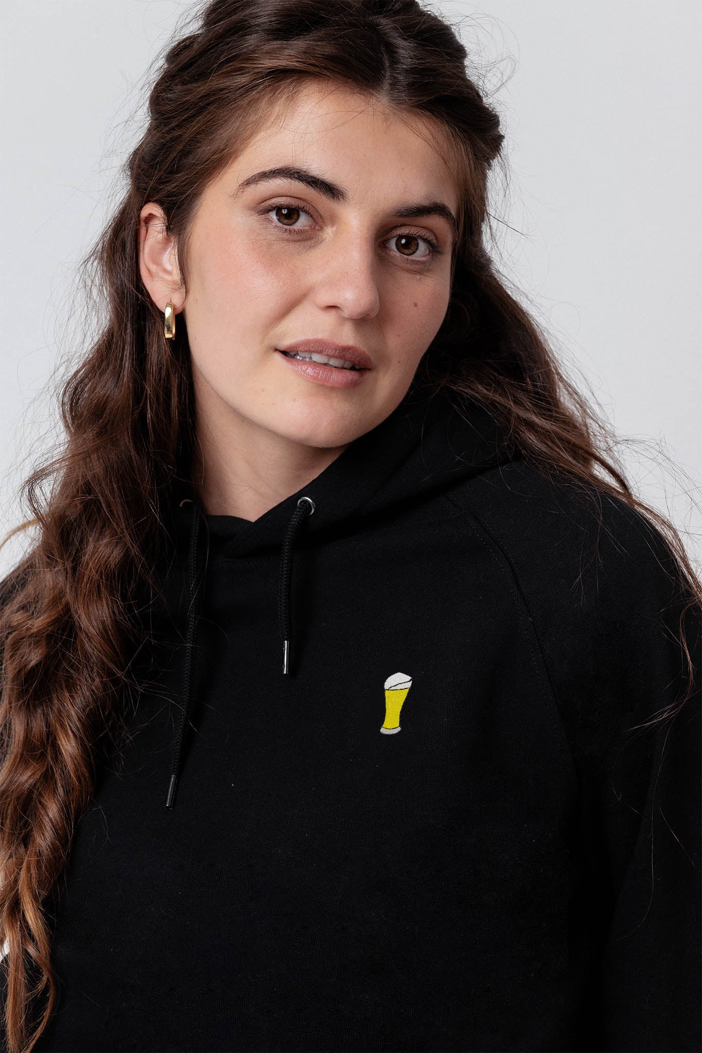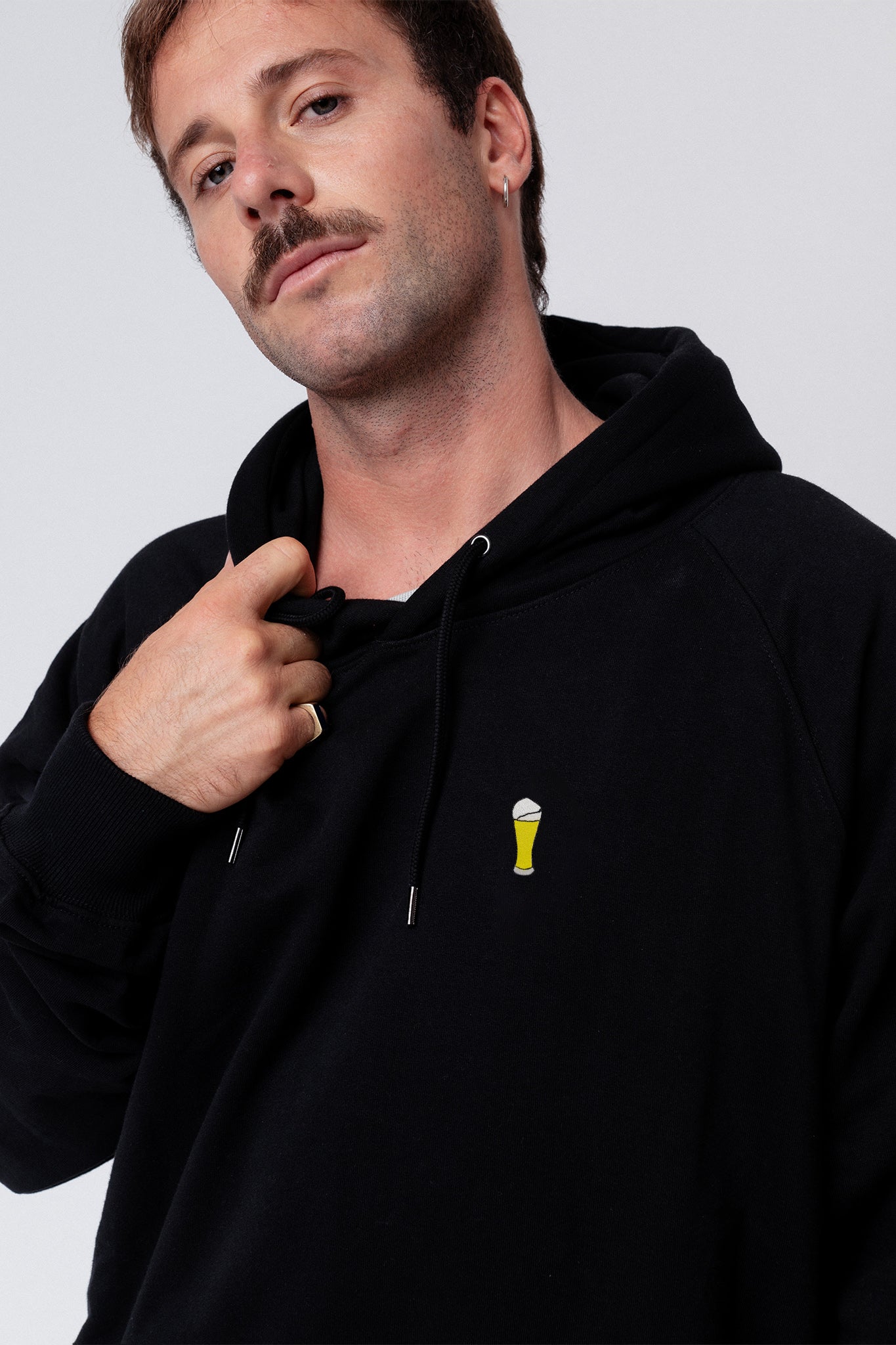 Super hochwertiger Bio Baumwoll Unisex Hoodie mit schwerem Stoff (350gsm) und gesticktem Weißbier Design
