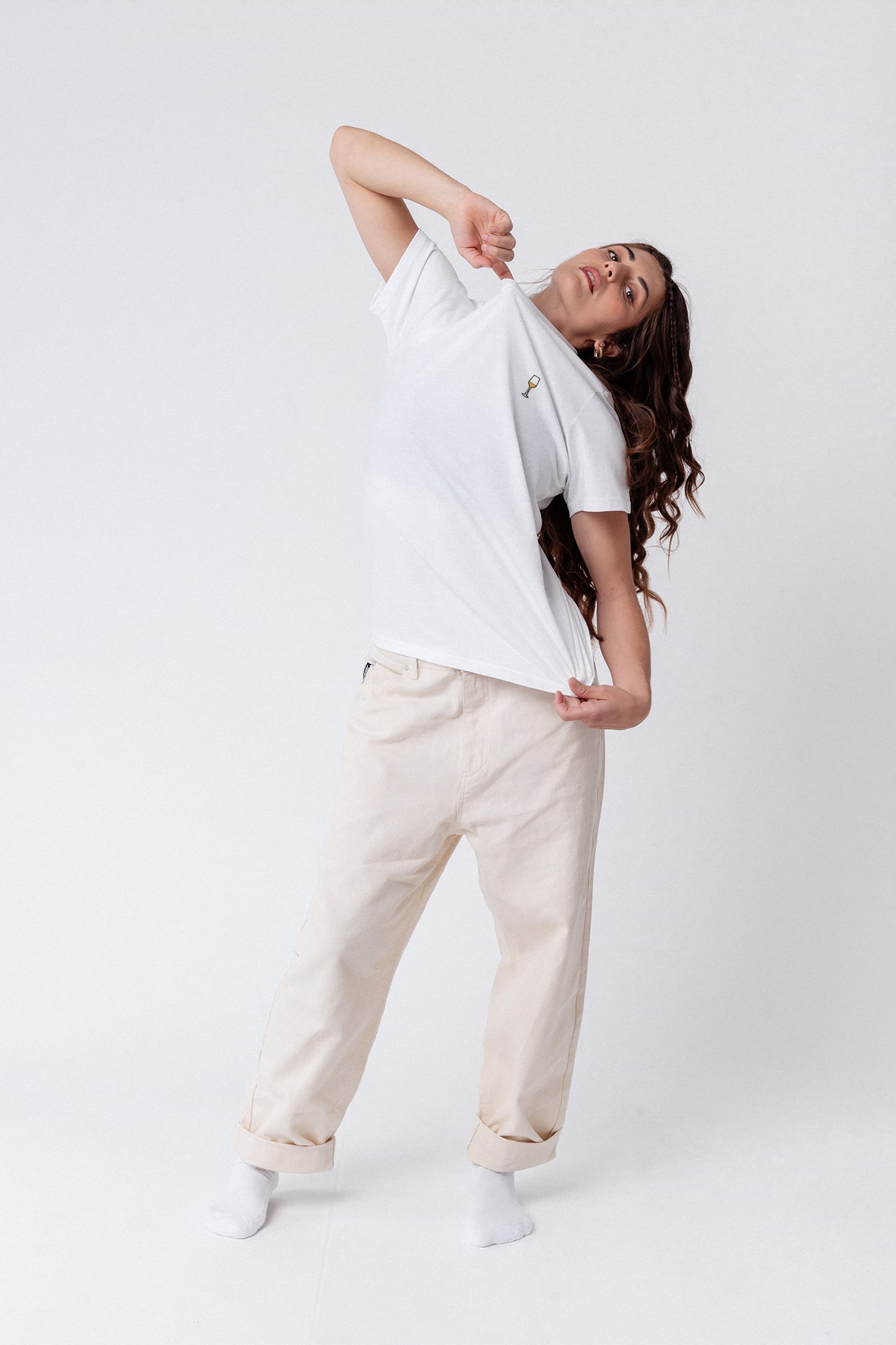 Besticktes Bio Baumwoll Unisex T-Shirt mit schwerem Stoff (190gsm) und gesticktem Weißwein Design