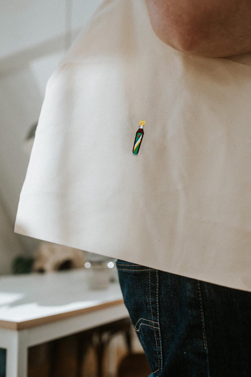 Jedes Design bei Fashion Drinks wird mit viel Liebe zum Detail handgezeichnet. Danach wird es sorgfältig auf unsere Stickmaschinen programmiert und übertragen. Während des Designprozesses führen wir im Schnitt 5-10 Probe-Stickvorgänge durch, um sicherzustellen, dass das Ergebnis 100% genau und perfekt ist. Unsere Spezialität ist die feine, detaillierte Stickerei im Bereich von 4-5 cm, auf die wir besonders stolz sind. So garantieren wir, dass jedes T-Shirt ein einzigartiges Kunstwerk ist, das höchste Qualität bietet.