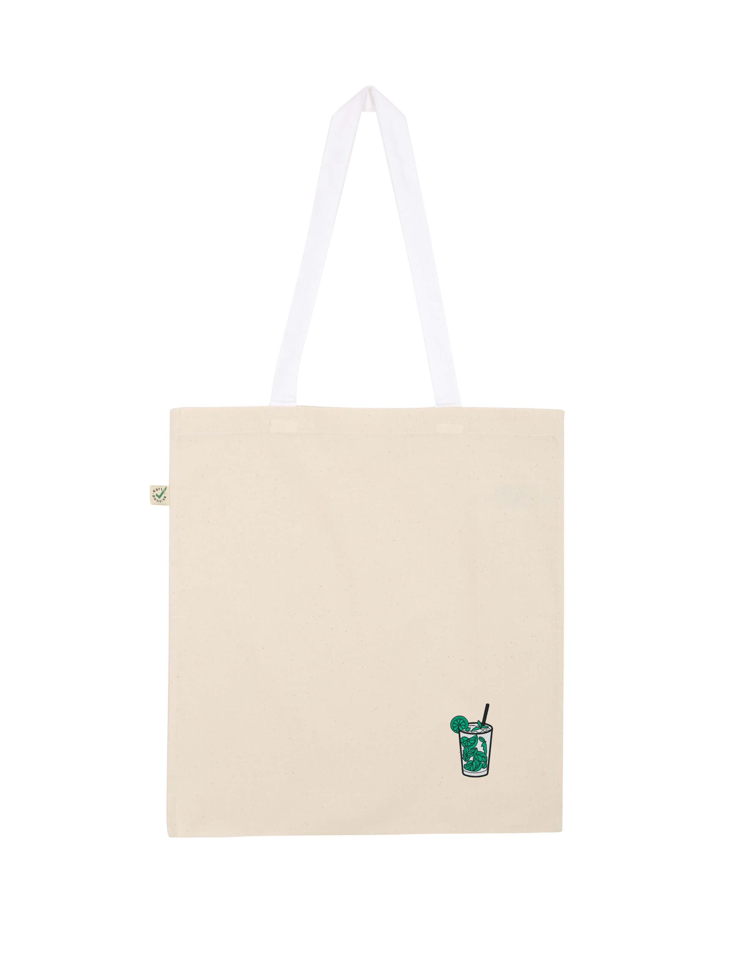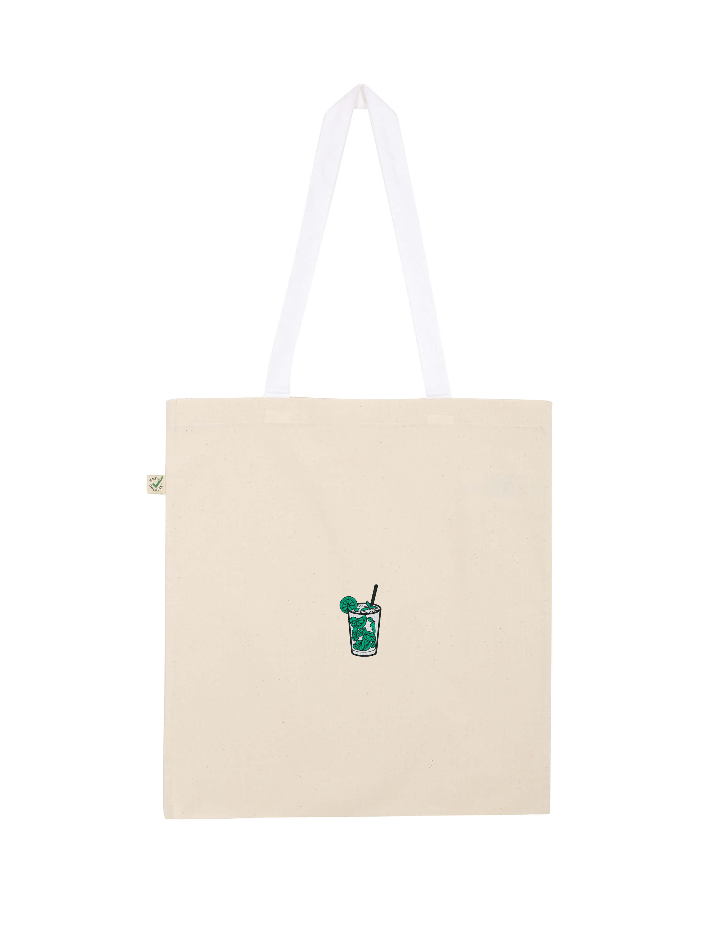 Embroidered fairly produced organic cotton tote bag in Mojito design.