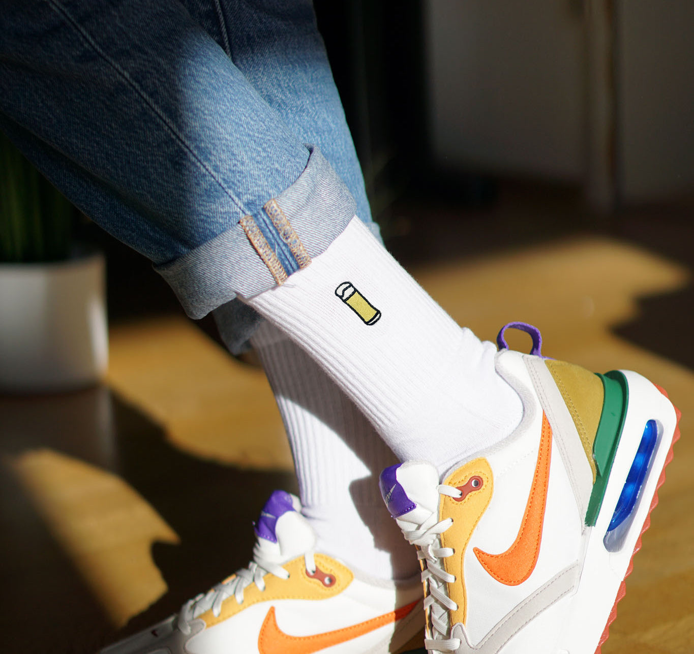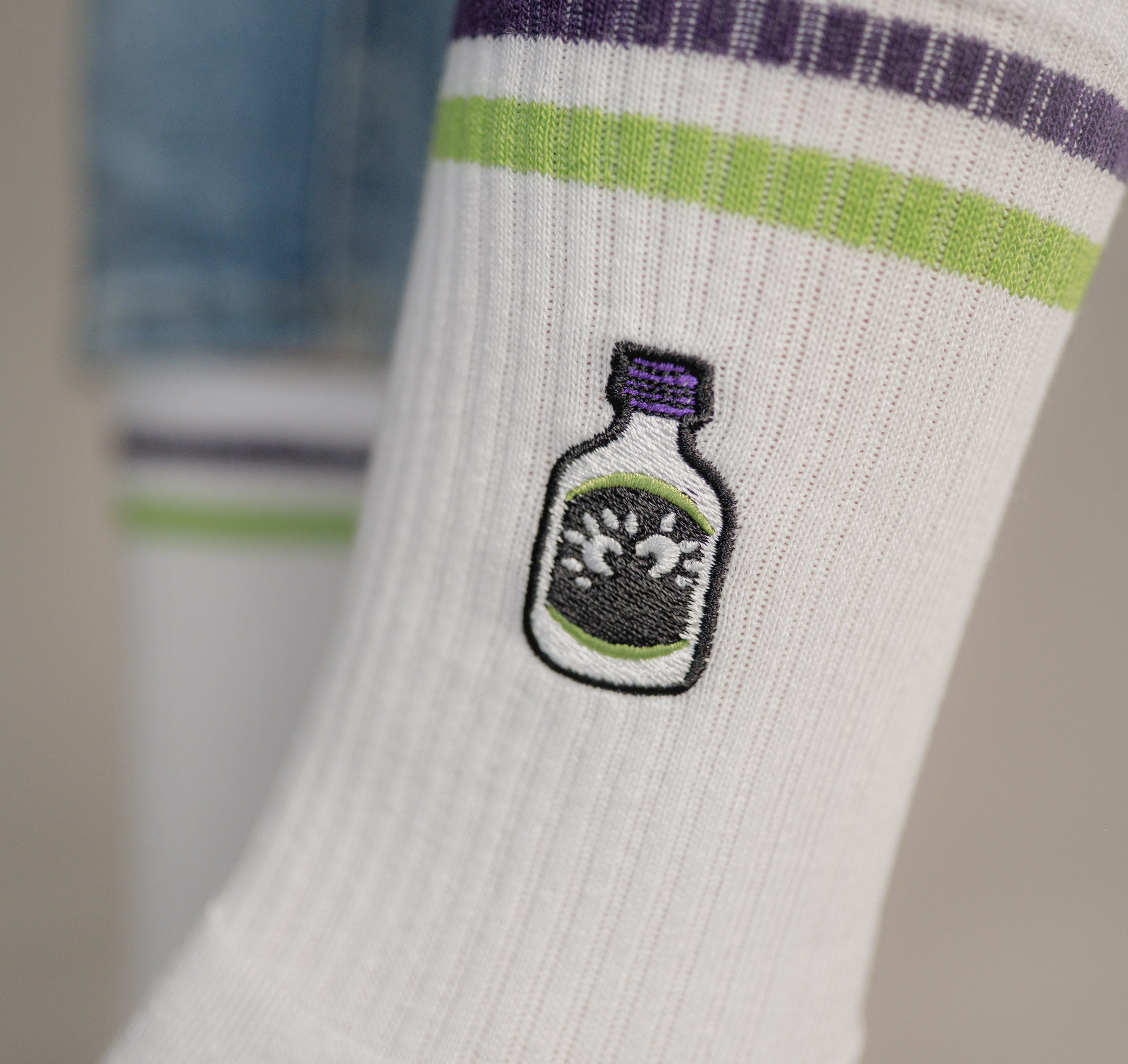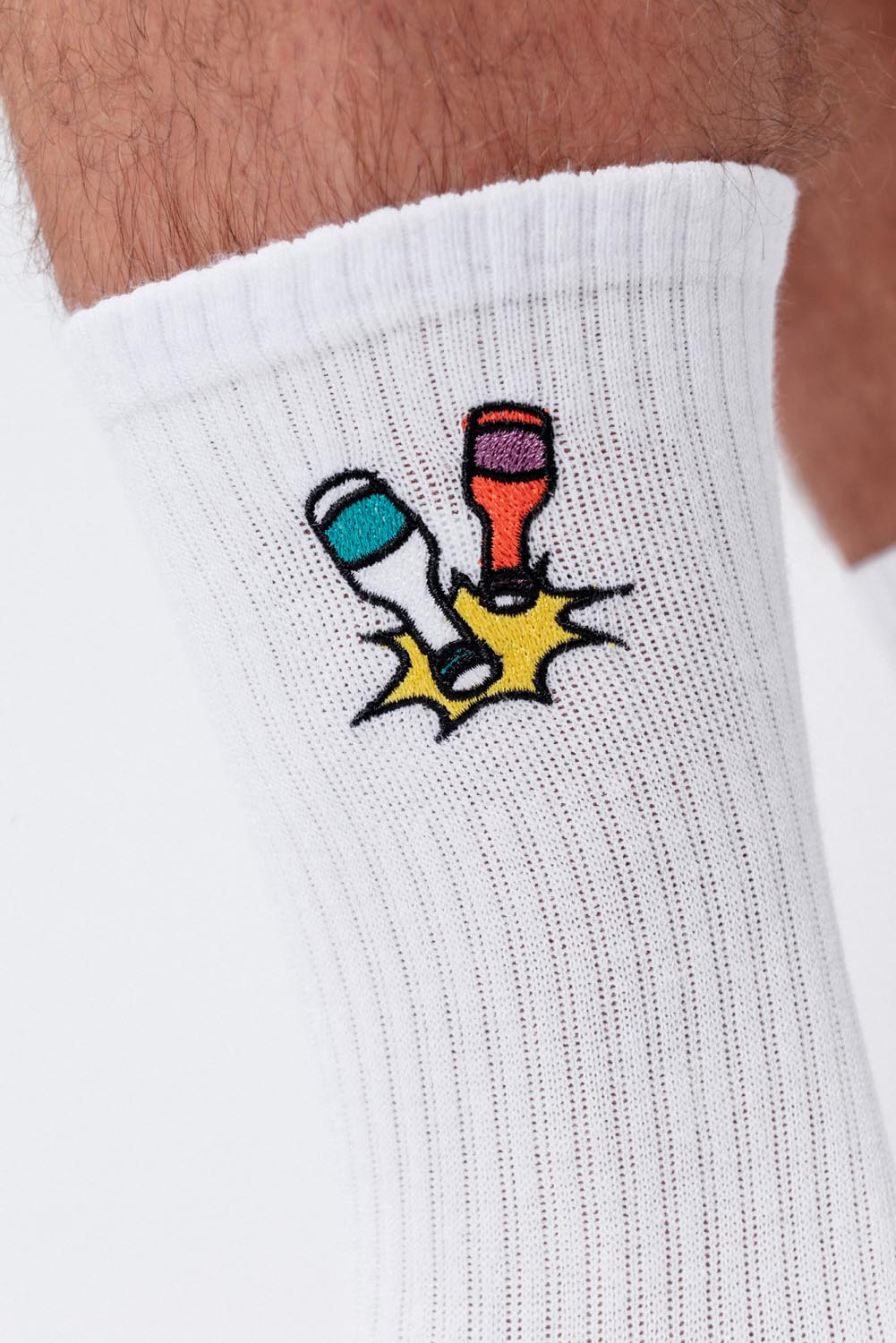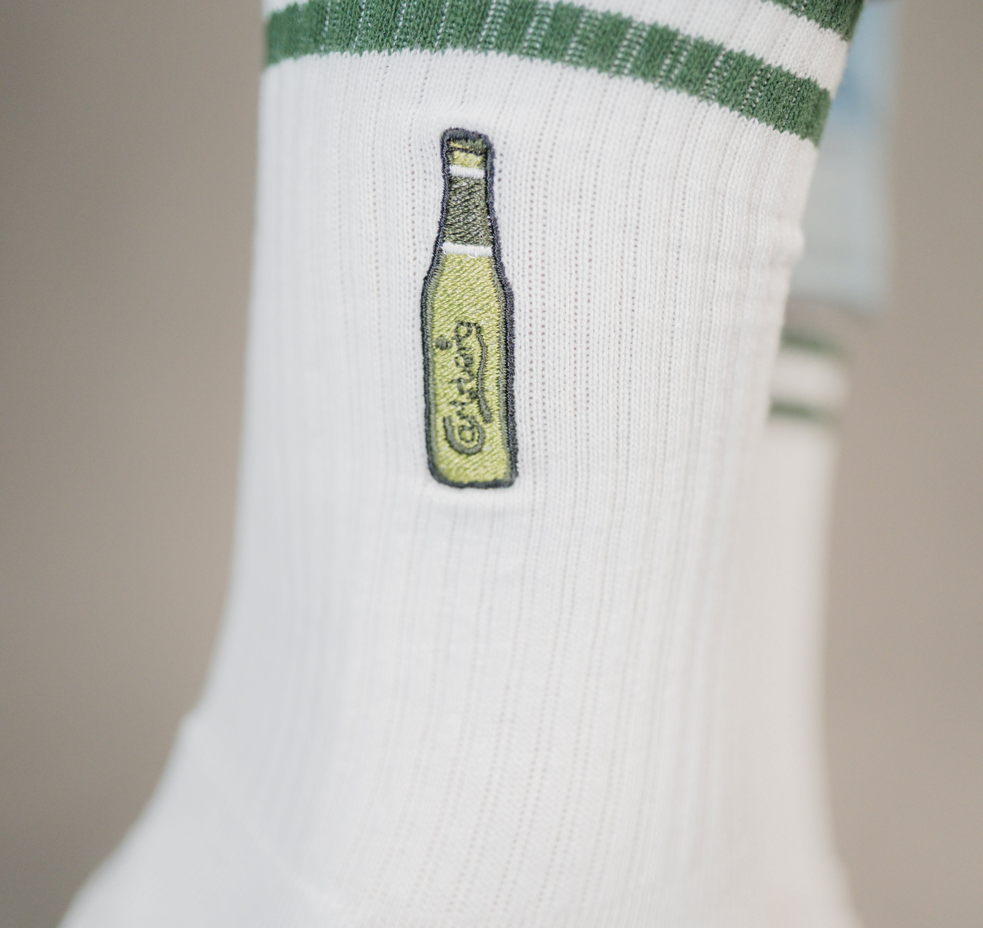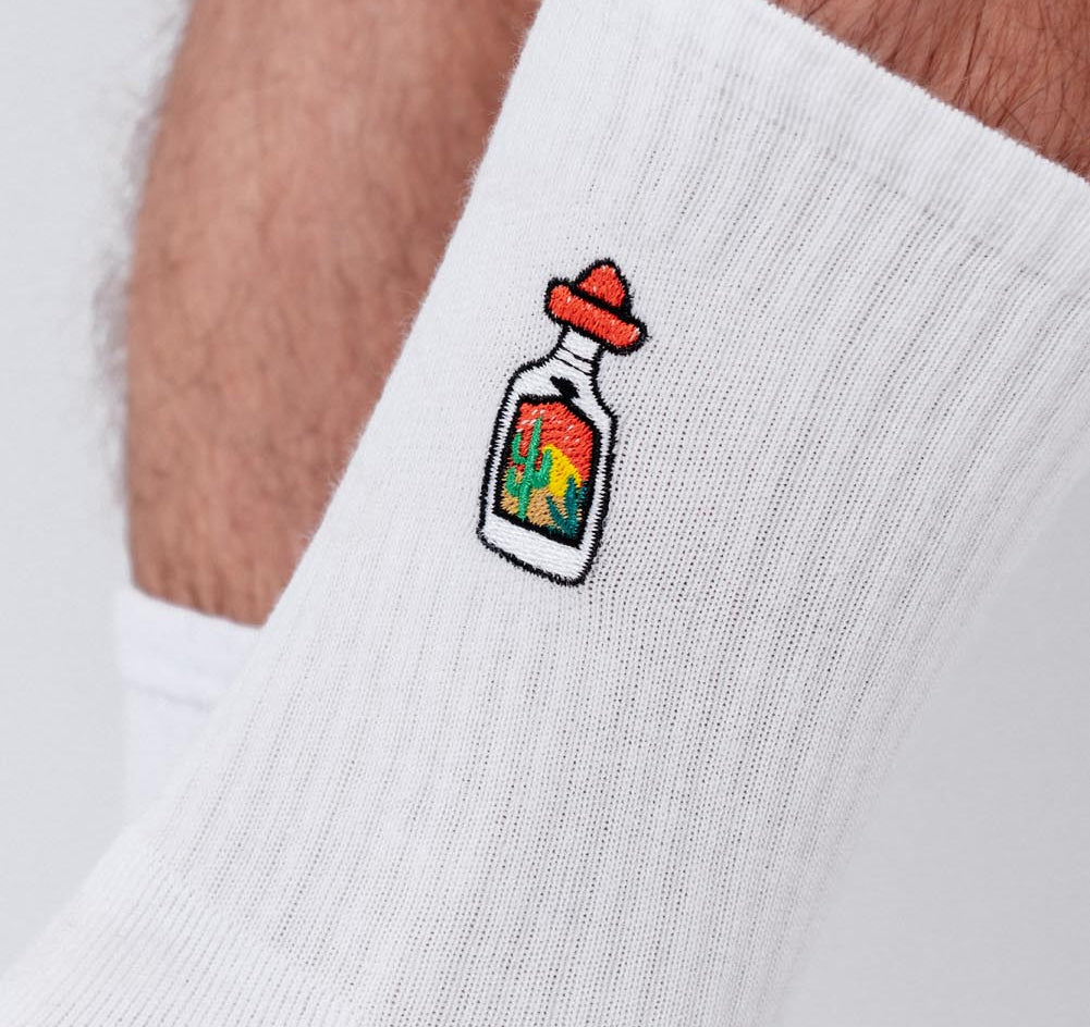 Die Stickerei auf unseren Fashion Drinks Socken bleibt auch nach mehrmaligem Waschen in einwandfreier Form. Wir verwenden präzise Industriemaschinen, die speziell für feine, detaillierte Stickarbeiten entwickelt wurden. So bleibt die Stickerei stabil und die Socken behalten ihre Form. Um die Qualität zu erhalten, empfehlen wir, die Socken bei niedrigen Temperaturen zu waschen und sie auf links zu drehen.