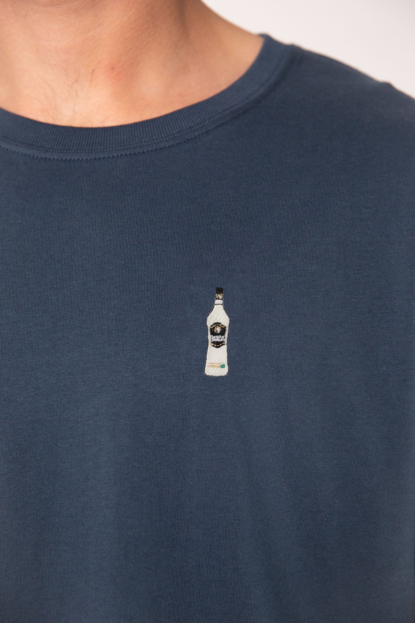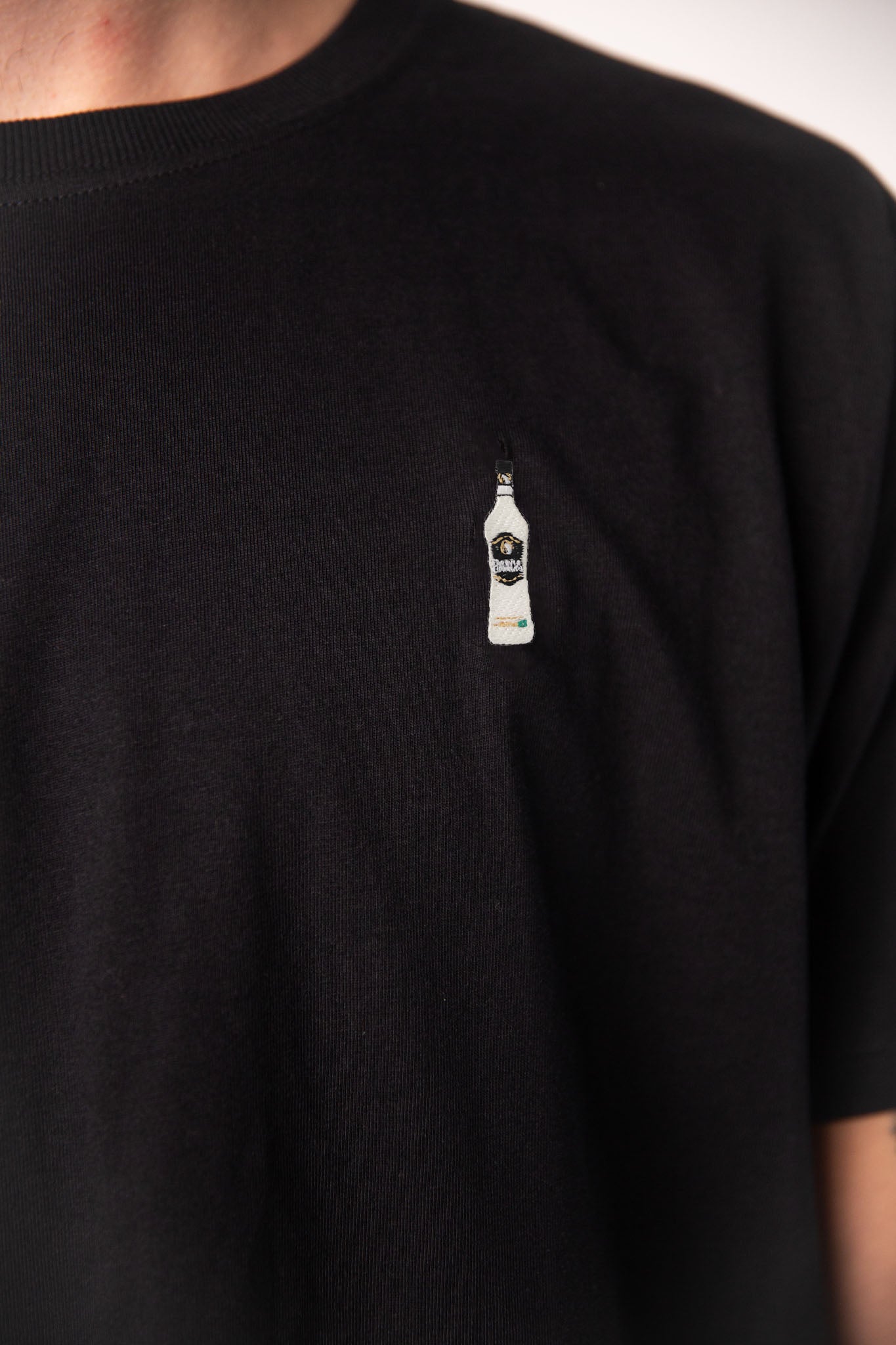 Besticktes Bio Baumwoll Unisex T-Shirt mit schwerem Stoff (190gsm) und der offiziellen gestickten Mangaroca Batida de Côco® Flasche