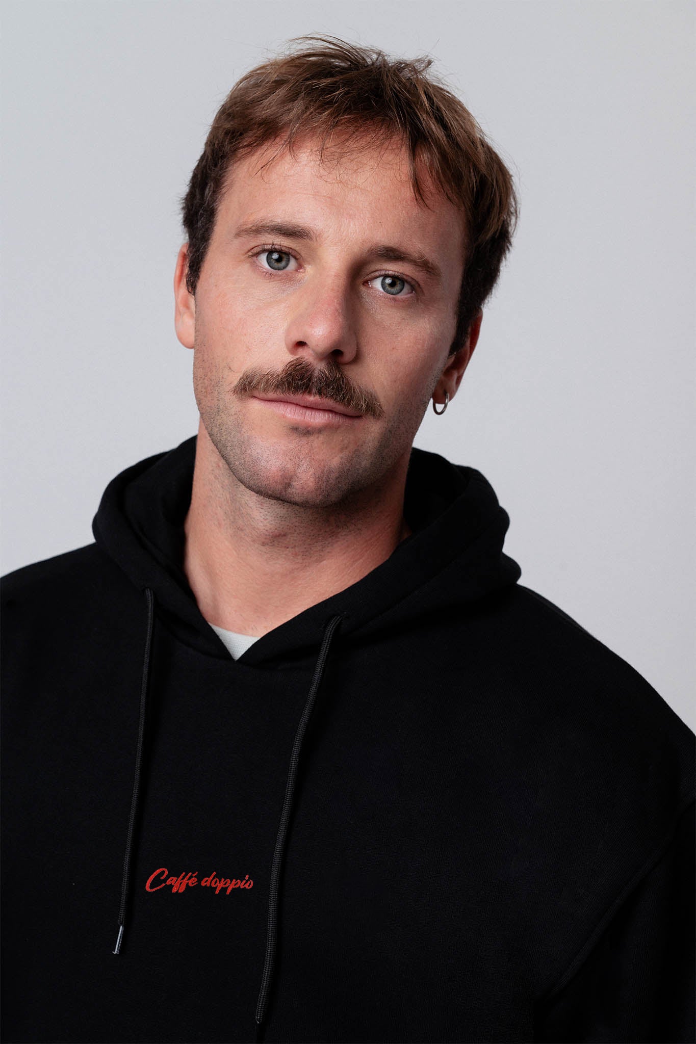 Super hochwertiger Bio Baumwoll Unisex Hoodie mit schwerem Stoff (350gsm) und gesticktem Caffé doppio Design