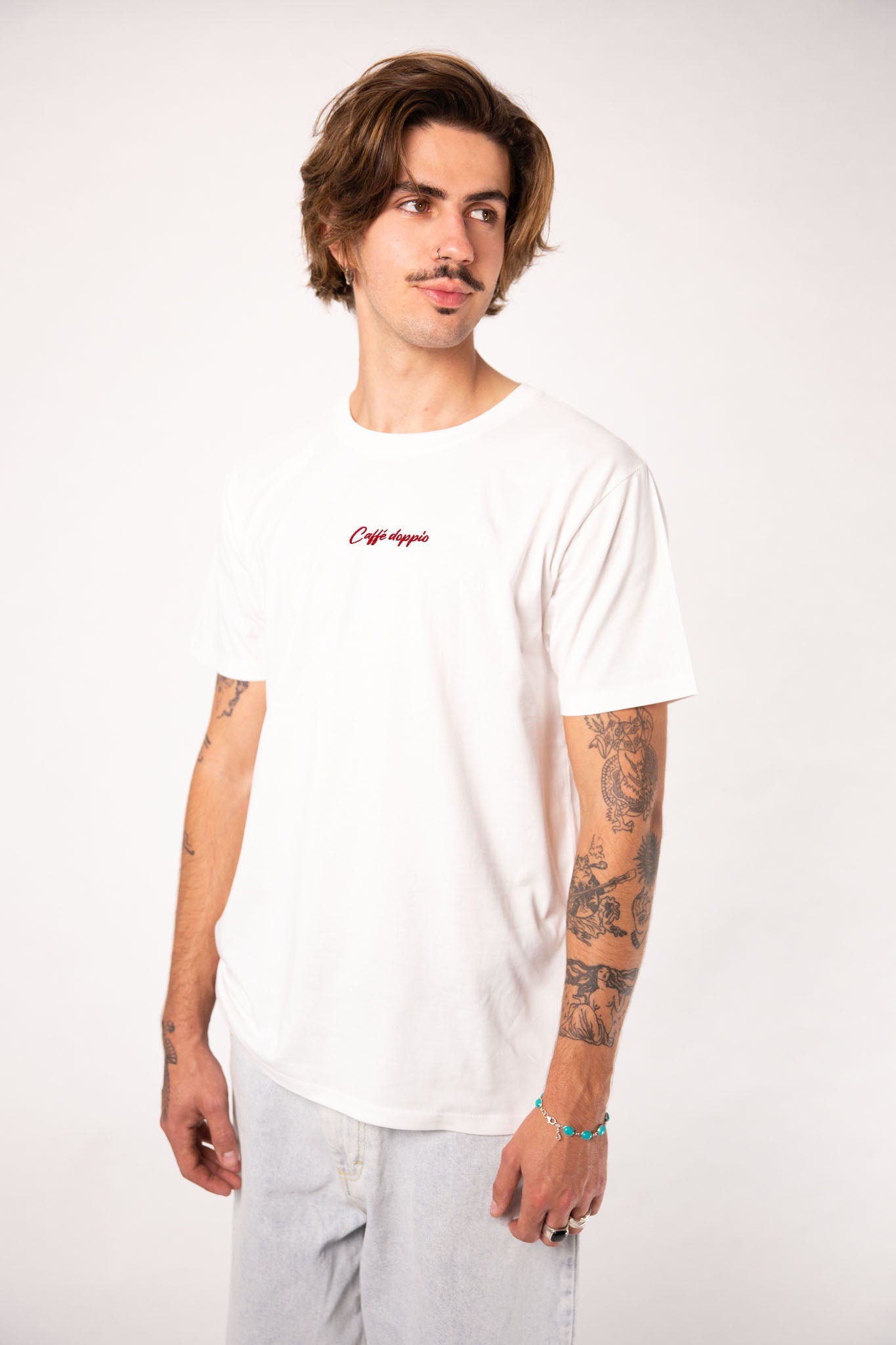 Super hochwertiges Bio Baumwoll Unisex T-Shirt mit extrem angenehmen Stoff (190gsm) und gesticktem Caffé doppio Design