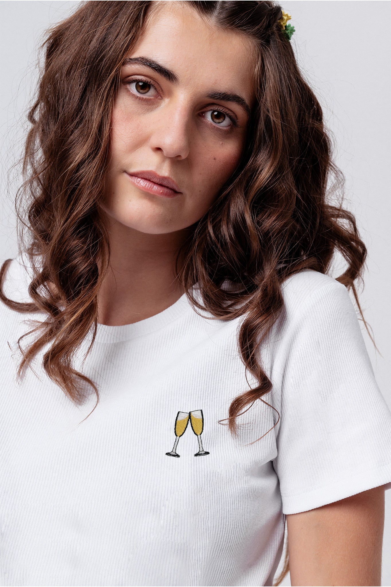 Sekt | Besticktes Bio Baumwoll Cropped T-Shirt