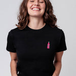 Besticktes Bio Baumwoll Frauen T-Shirt mit extrem angenehmen Stoff (155gsm) und der offiziellen gestickten DOS MAS Flasche