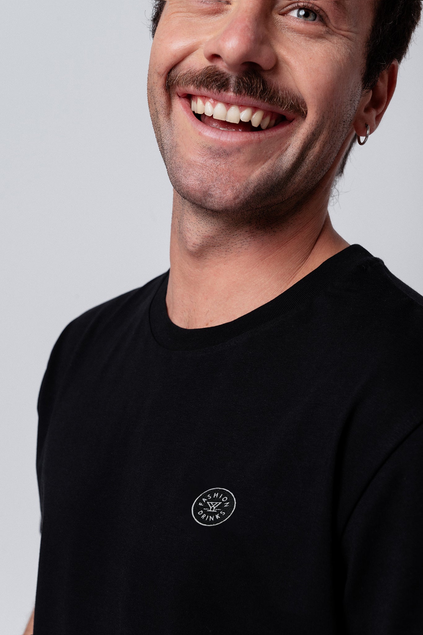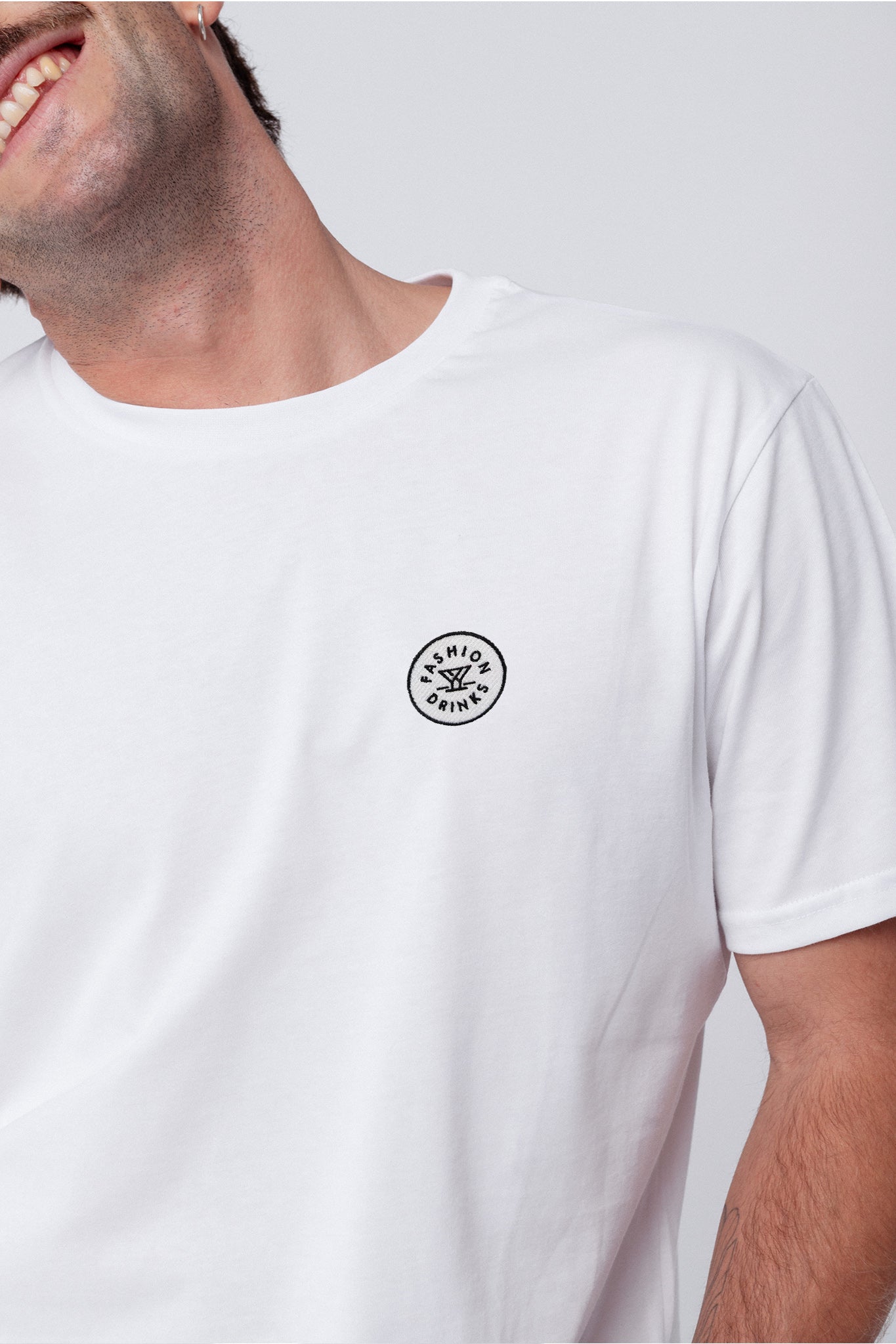 Besticktes Bio Baumwoll Unisex T-Shirt mit schwerem Stoff (190gsm) und gesticktem Fashion Drinks Design