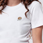 Super hochwertiges Bio Baumwoll Cropped T-Shirt mit gesticktem Flat White Design in drei verschiedenen Schnitt-Varianten: Ripped, Regular & Oversized