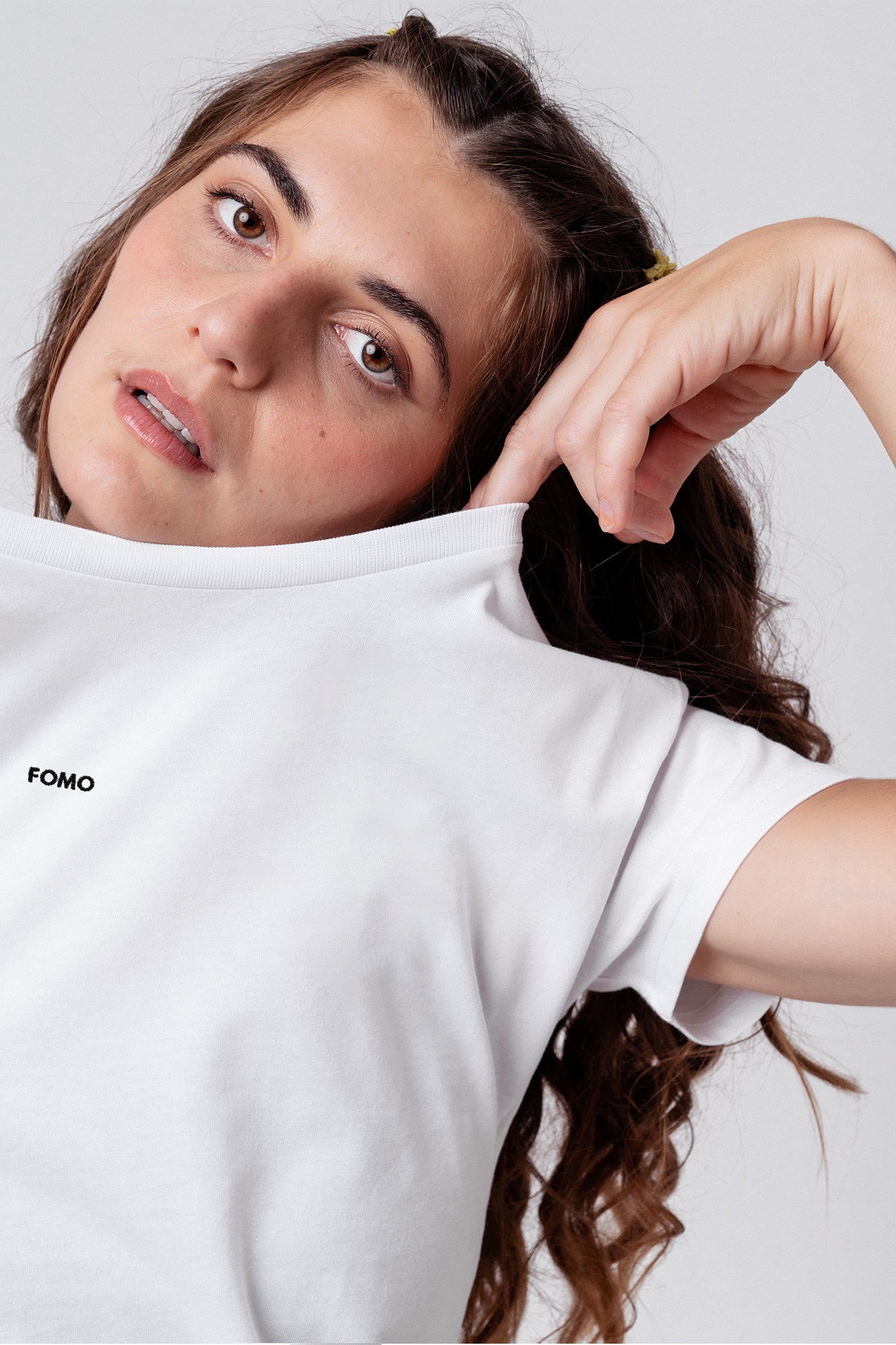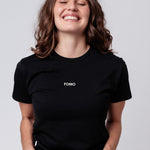 Besticktes Bio Baumwoll Frauen T-Shirt mit extrem angenehmen Stoff (155gsm) und gesticktem  FOMO (Fear of missing out) Lettering