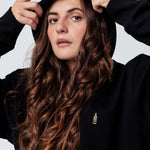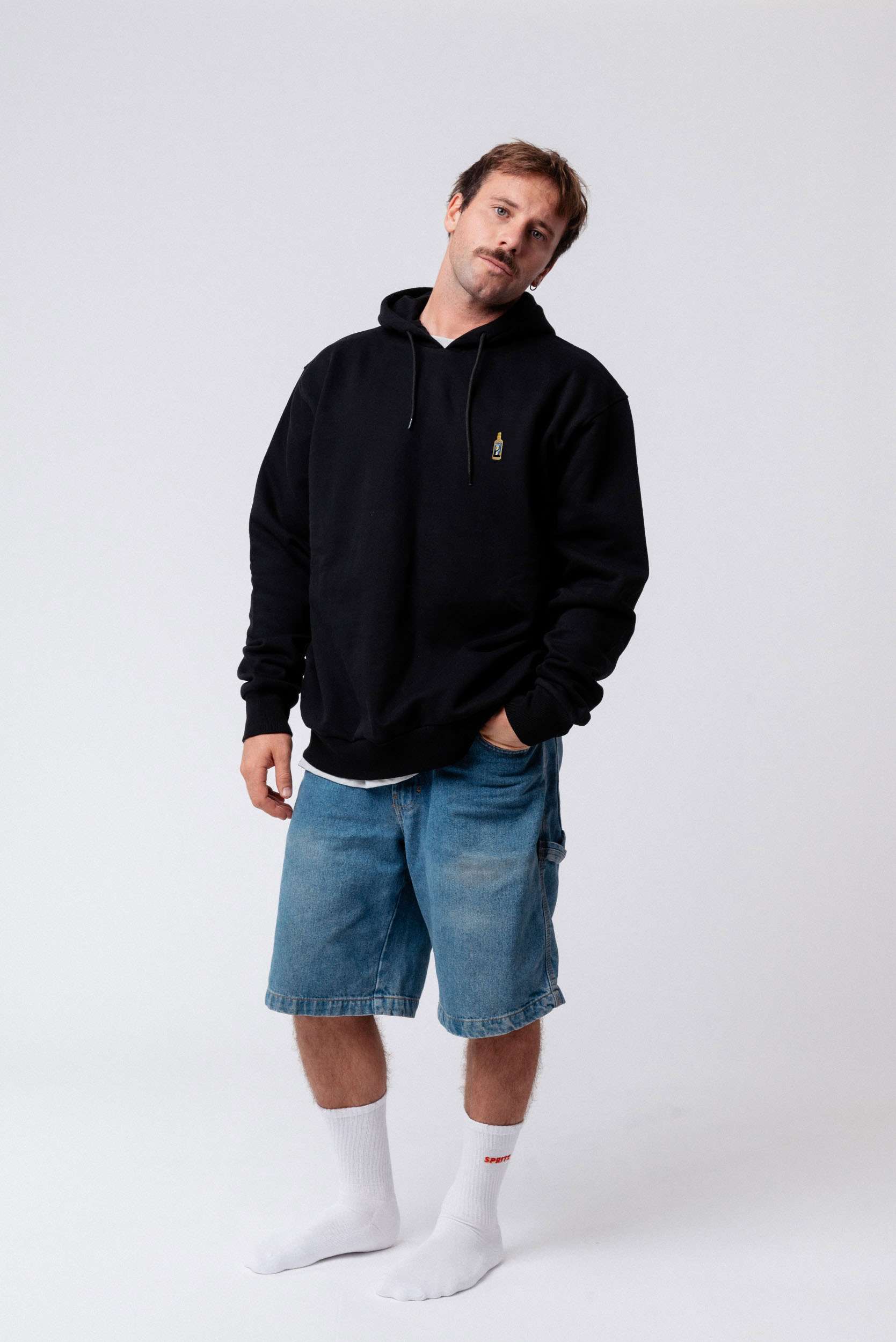 Bestickter Bio Baumwoll Unisex Hoodie mit schwerem Stoff (350gsm) und offiziellem gesticktem Franzi Franzbrötchenlikör Design