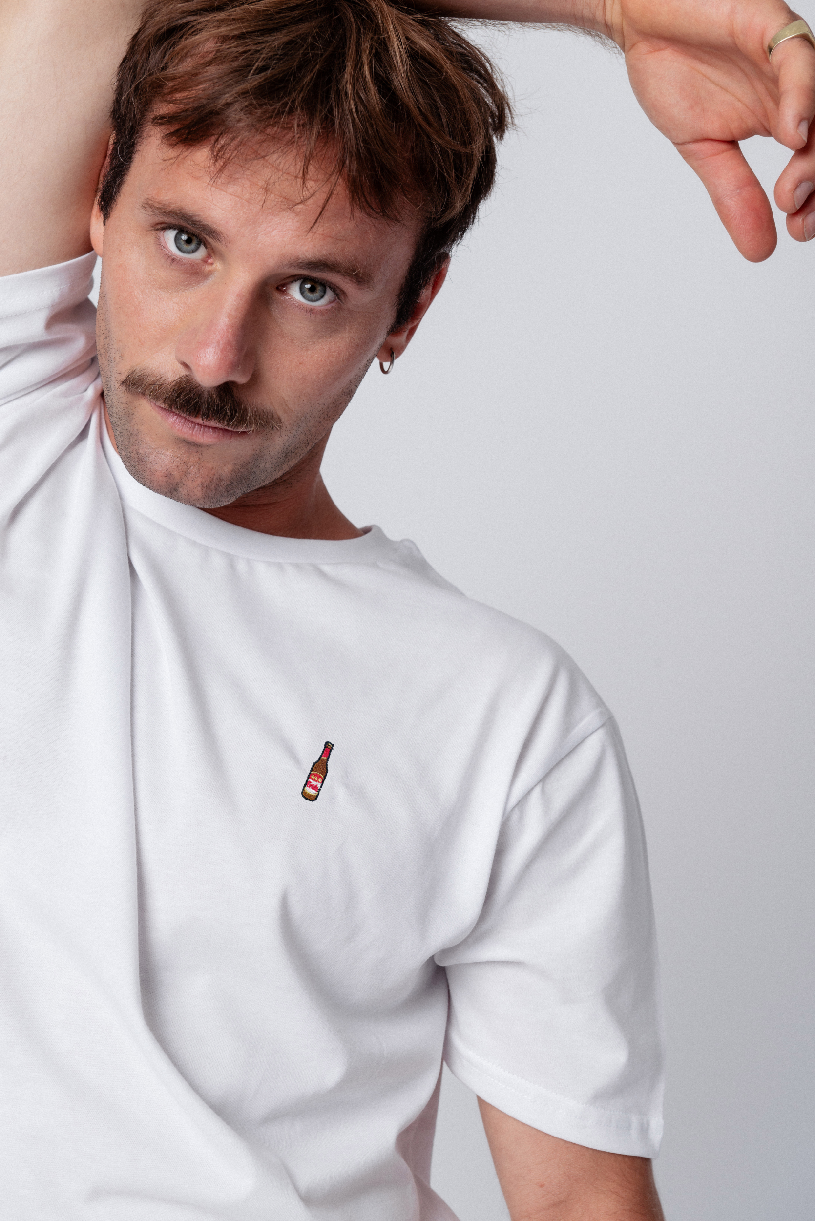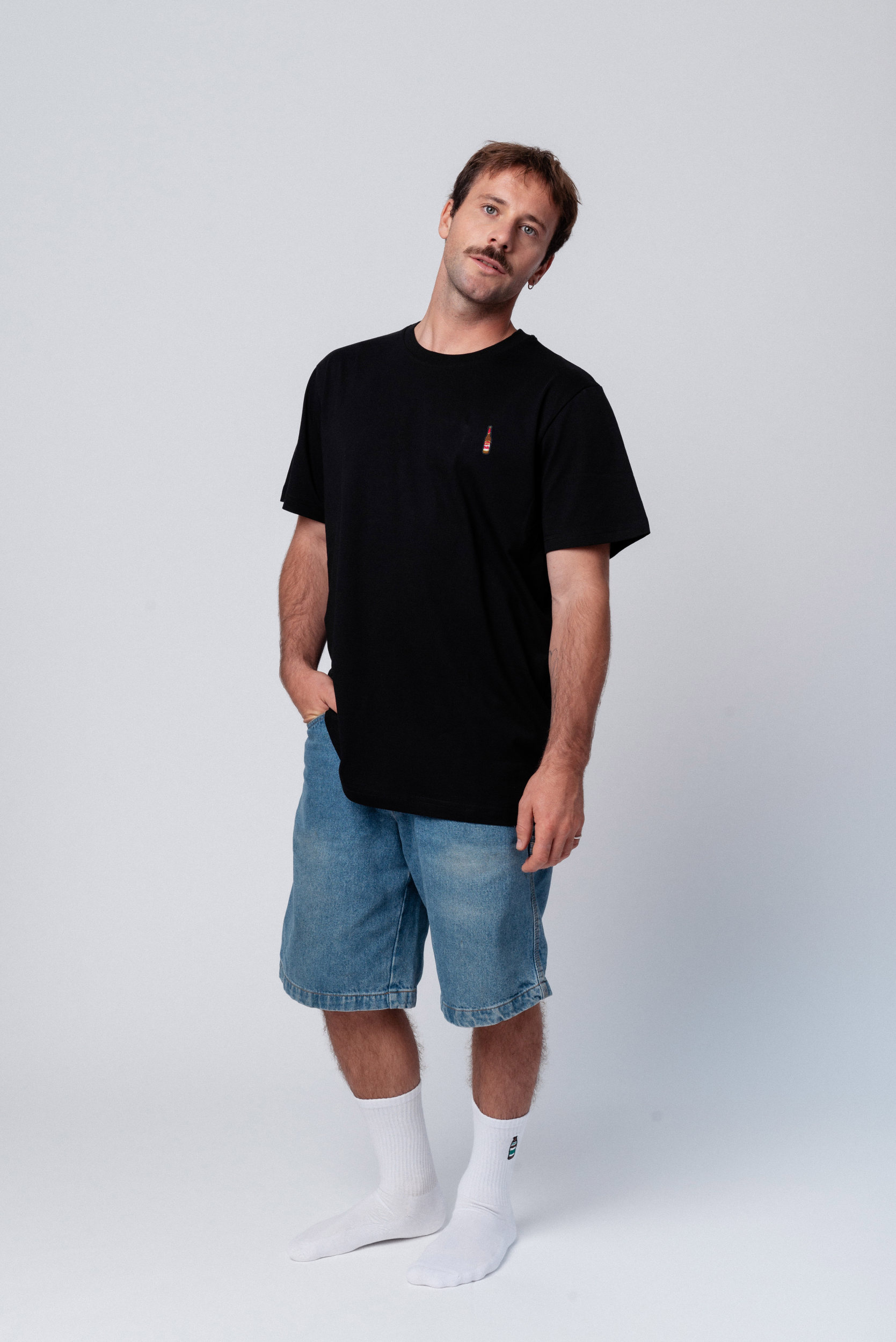 Super hochwertiges Bio Baumwoll Unisex T-Shirt mit schwerem Stoff (190gsm) und der offiziell gestickten Früh Kölsch Flasche
