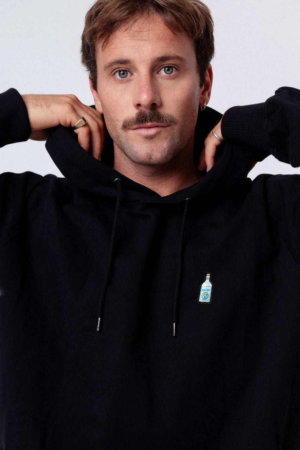 Super hochwertiger Bio Baumwoll Unisex Hoodie mit schwerem Stoff (350gsm) und der offiziell gestickten GIN SUL Flasche