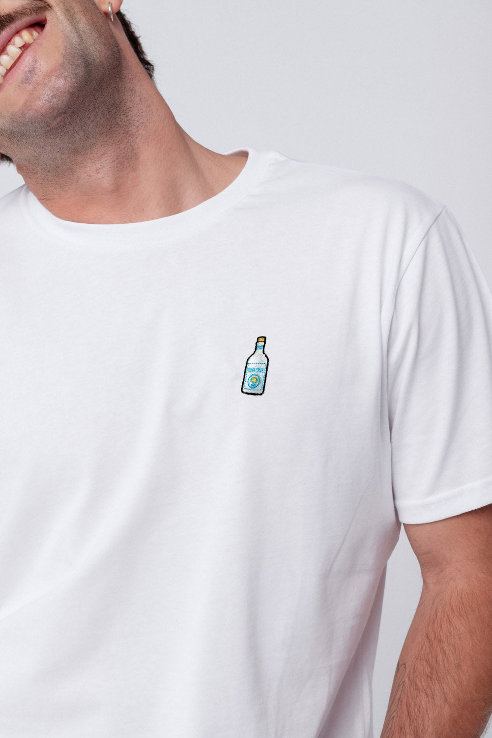 Super hochwertiges Bio Baumwoll Unisex T-Shirt mit schwerem Stoff (190gsm) und der offiziell gestickten GIN SUL Flasche