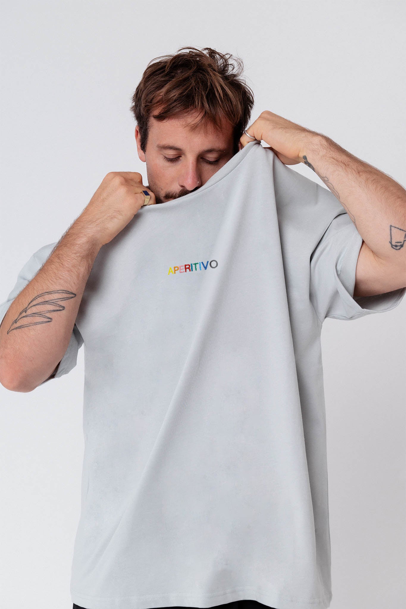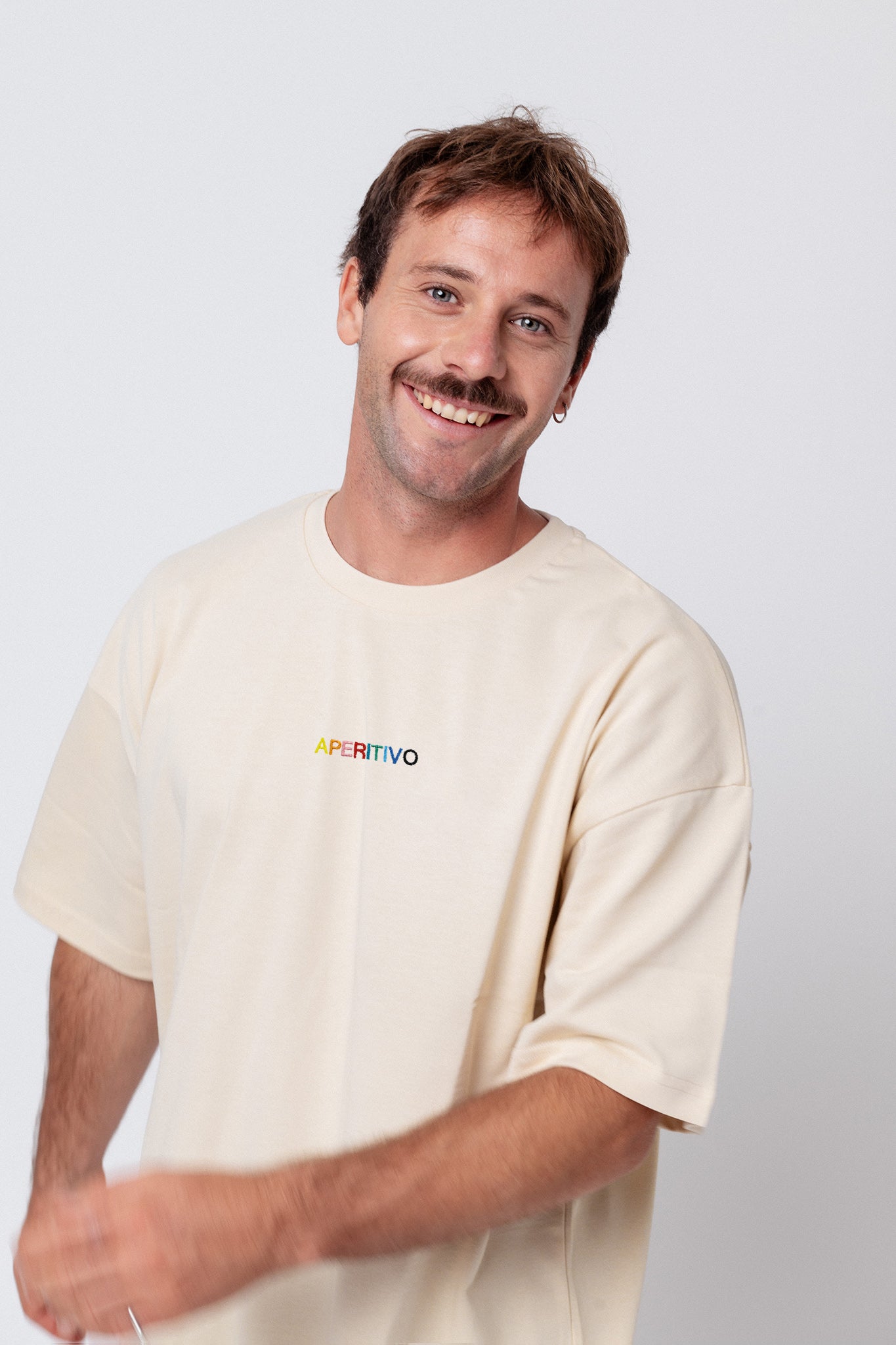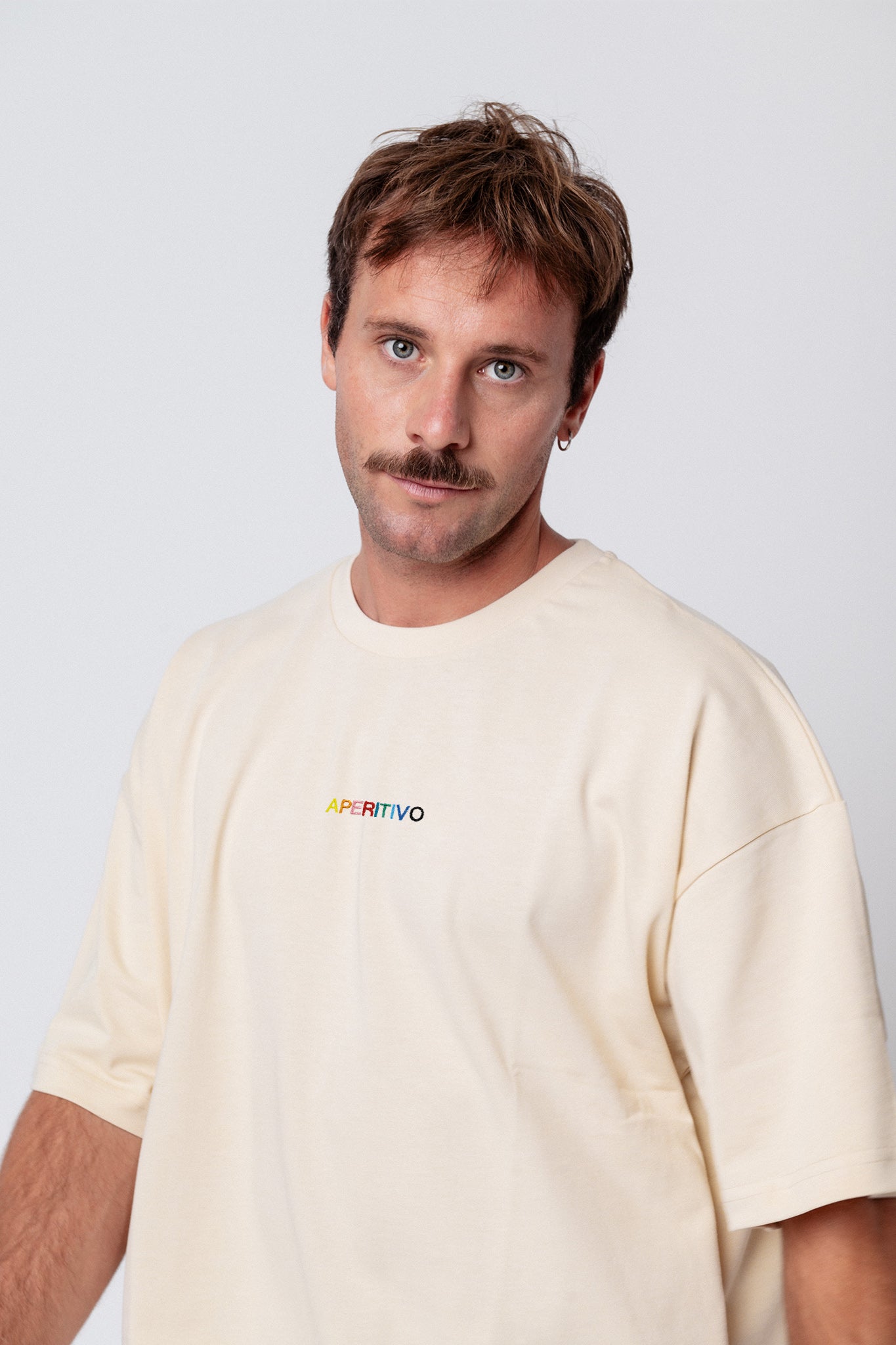 Heavy Oversized Bio Baumwoll T-Shirt mit extra schwerem Stoff (230gsm) und gesticktem Aperitivo Schriftzug