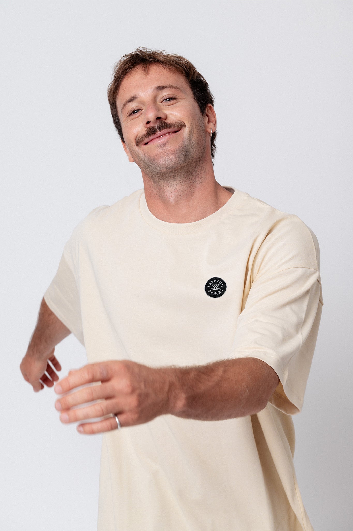 Heavy Oversized Bio Baumwoll T-Shirt mit extra schwerem Stoff (230gsm) und gesticktem Fashion Drinks Design