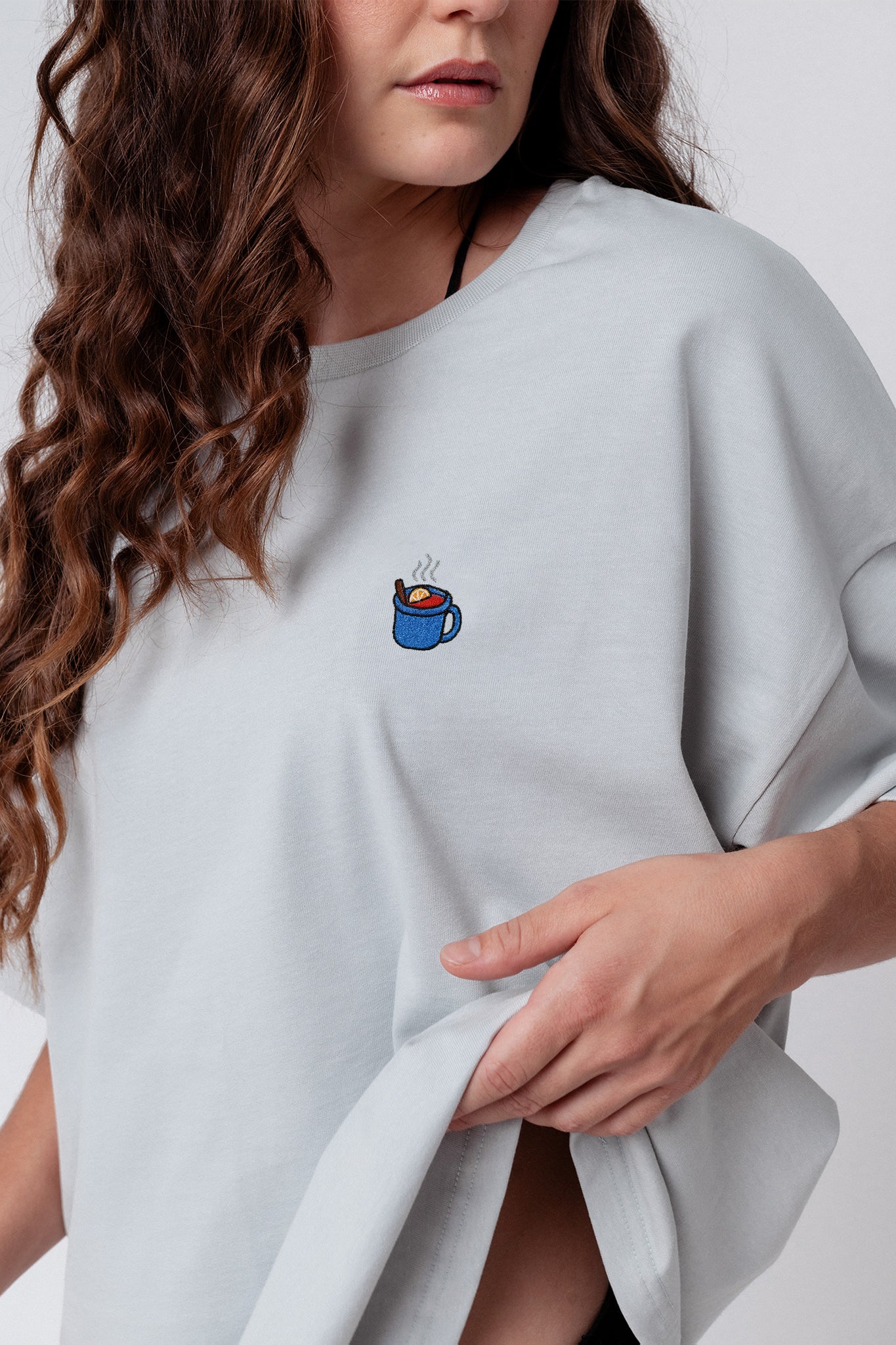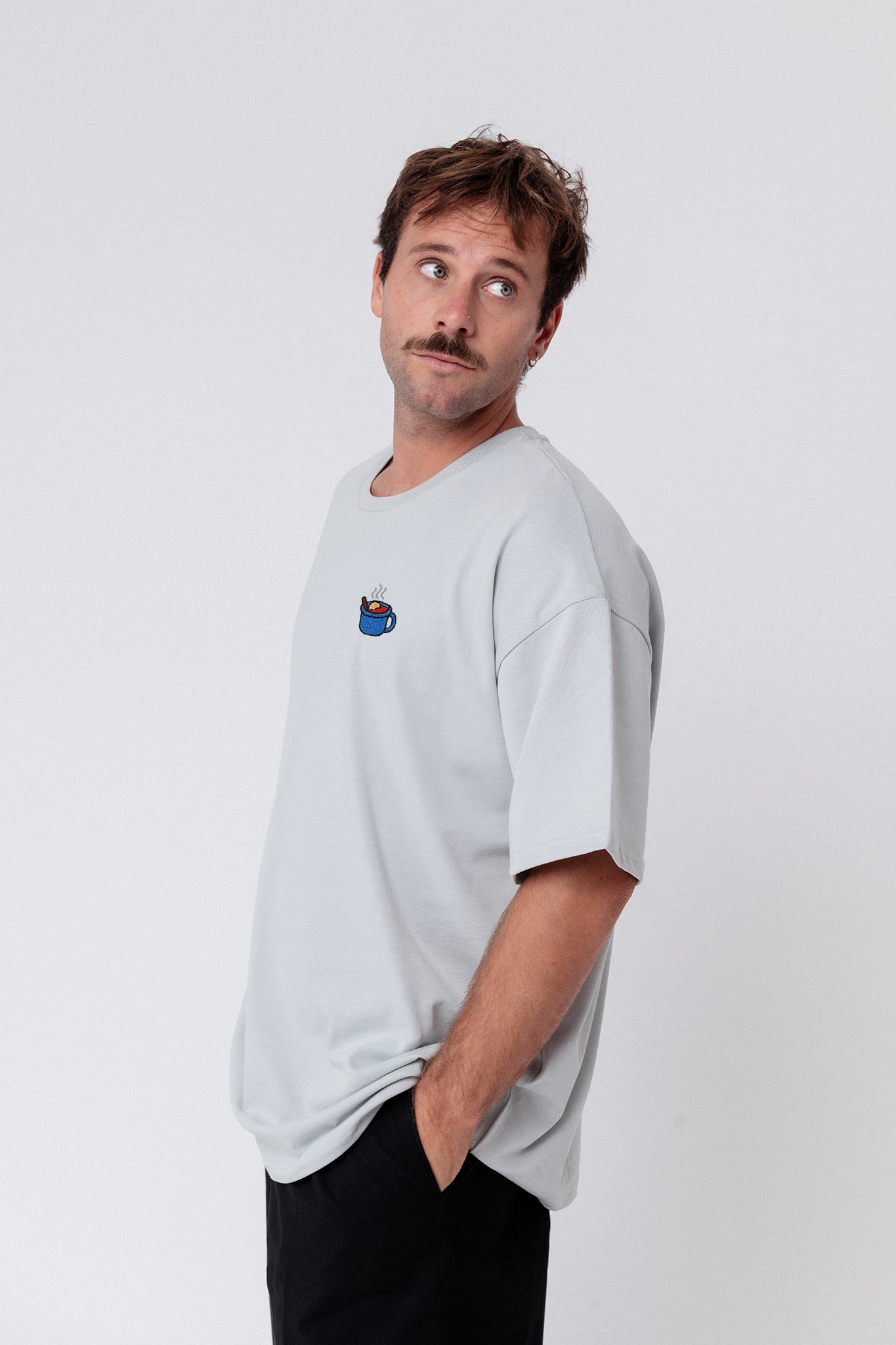 Heavy Oversized Bio Baumwoll T-Shirt mit extra schwerem Stoff (230gsm) und dem gestickten Glühwein Design
