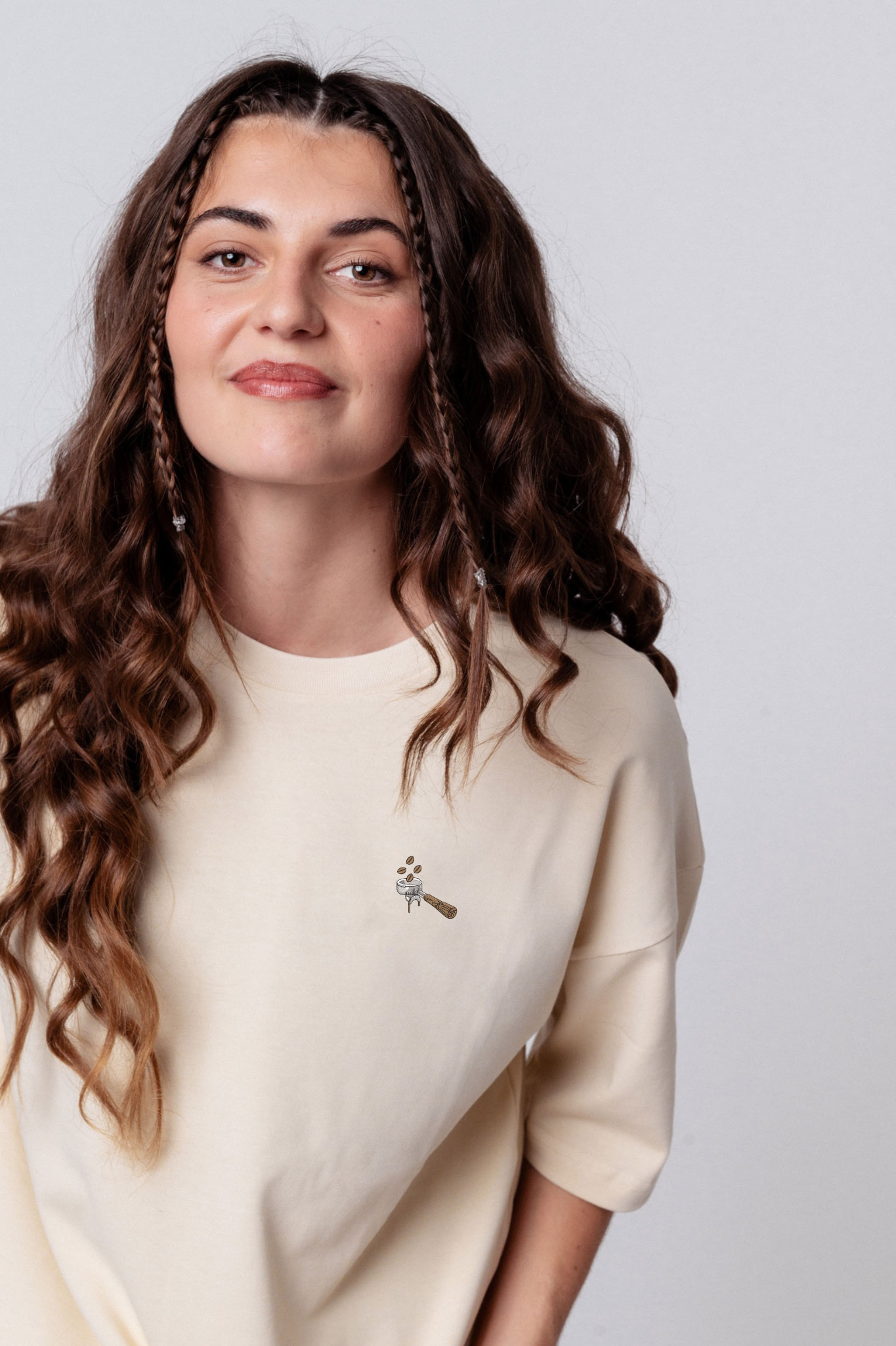 Heavy Oversized Bio Baumwoll T-Shirt mit extra schwerem Stoff (230gsm) und gesticktem Siebträger Beans Design