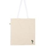 Embroidered, fairly produced organic cotton carrier bag in Hugo design.