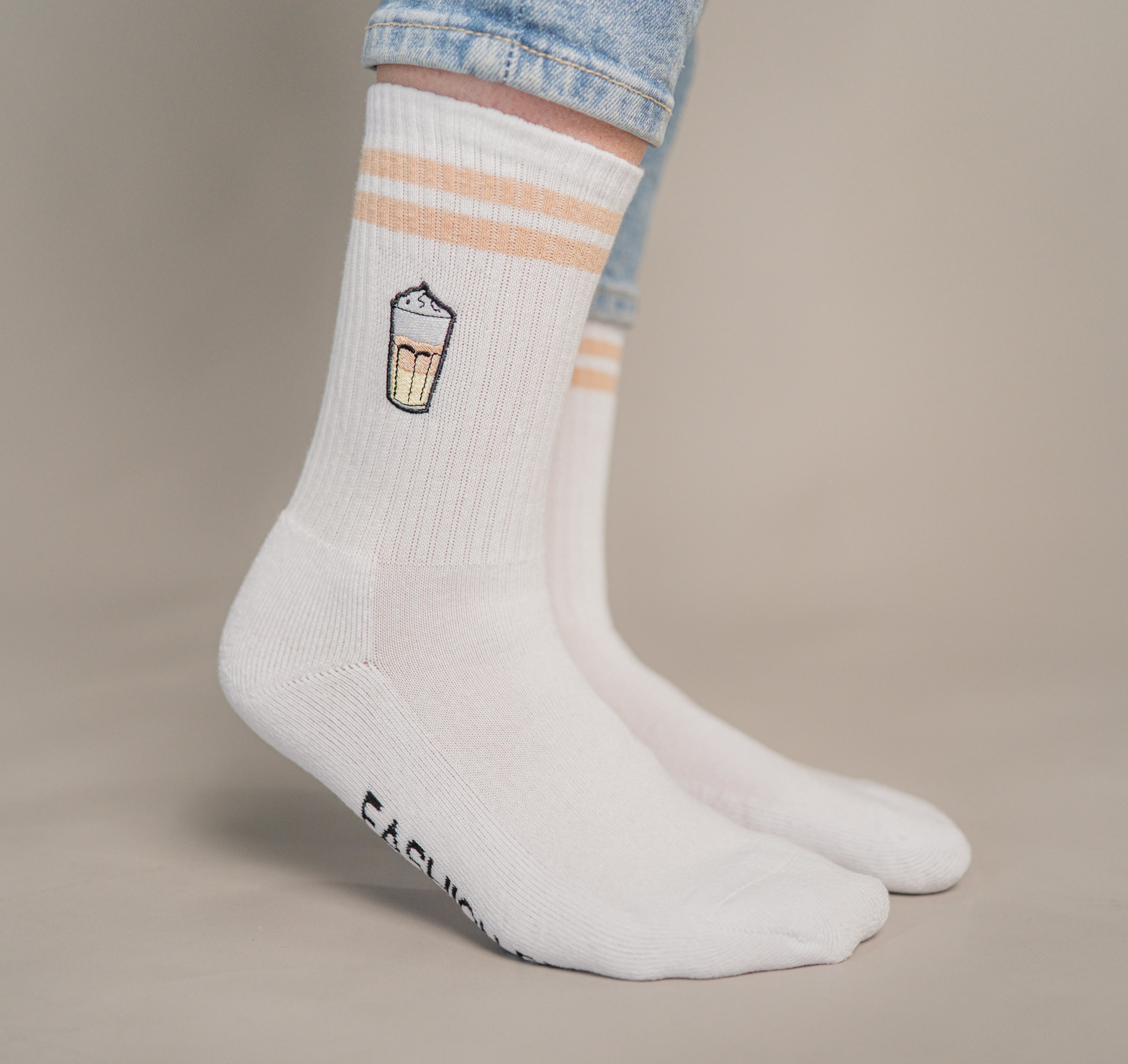 Unsere Fashion Drinks Socken zeichnen sich durch mehrere einzigartige Merkmale aus: Sie bestehen aus atmungsaktiver Bio-Baumwolle, die für ein angenehmes Tragegefühl sorgt. Die doppelt gewebte Sohle garantiert extra Komfort und Haltbarkeit, während der hochwertige Premium-Stick die Socken zu einem echten Hingucker macht. Zudem bieten wir einzigartige Designs mit offiziellen Kooperationen, die die beliebtesten Getränke repräsentieren. So bekommst du nicht nur Komfort, sondern auch einen stylischen Statement-Look!