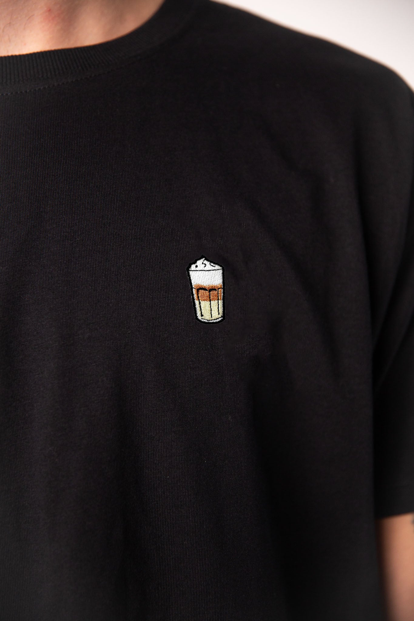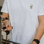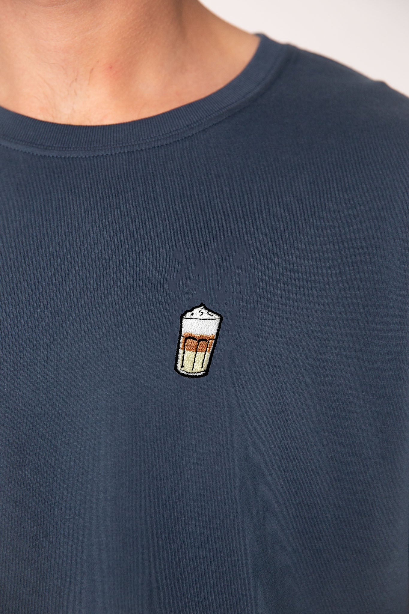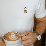 Super hochwertiges Bio Baumwoll Unisex T-Shirt mit schwerem Stoff (190gsm) und gesticktem Latte Macchiato Design