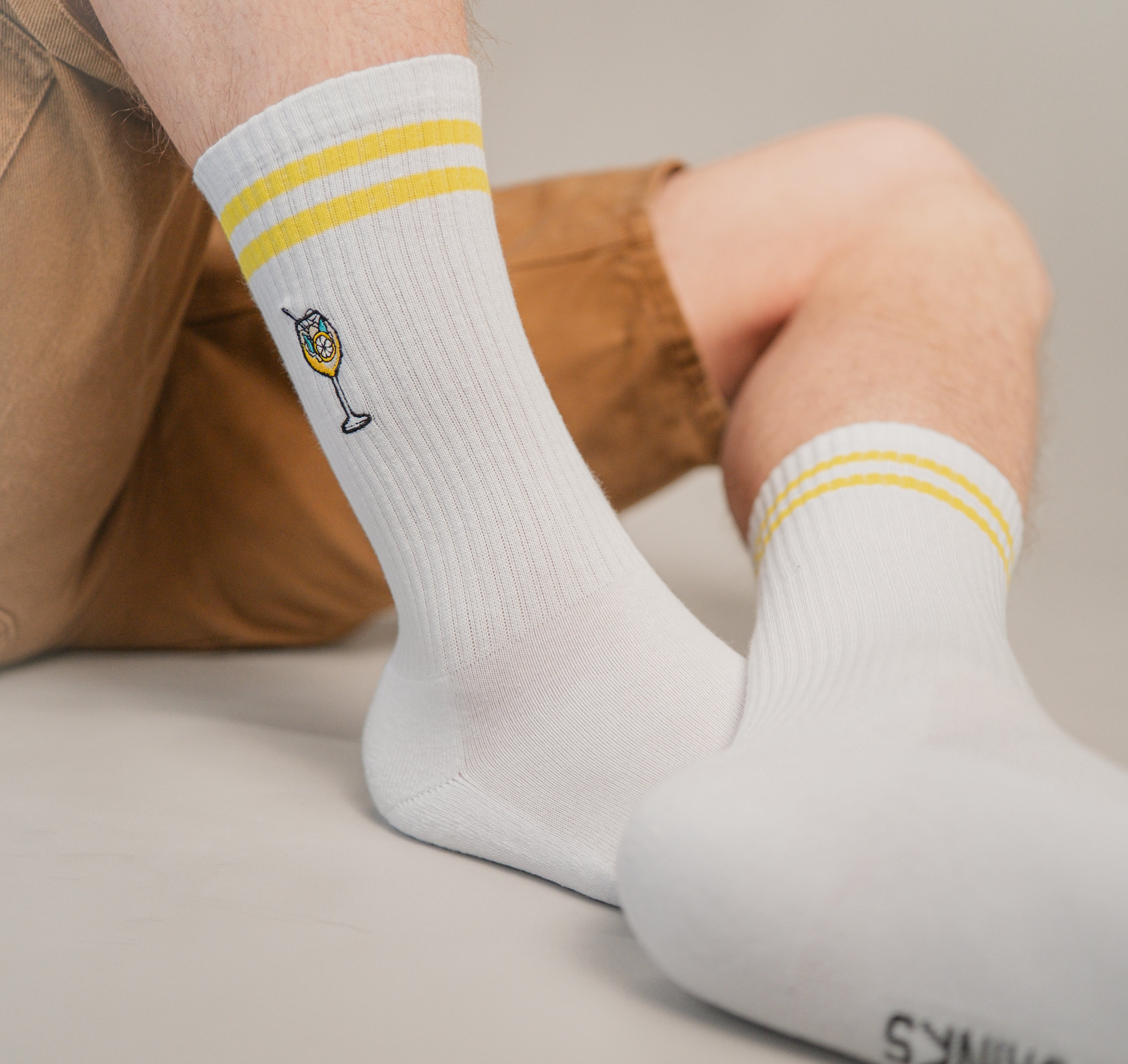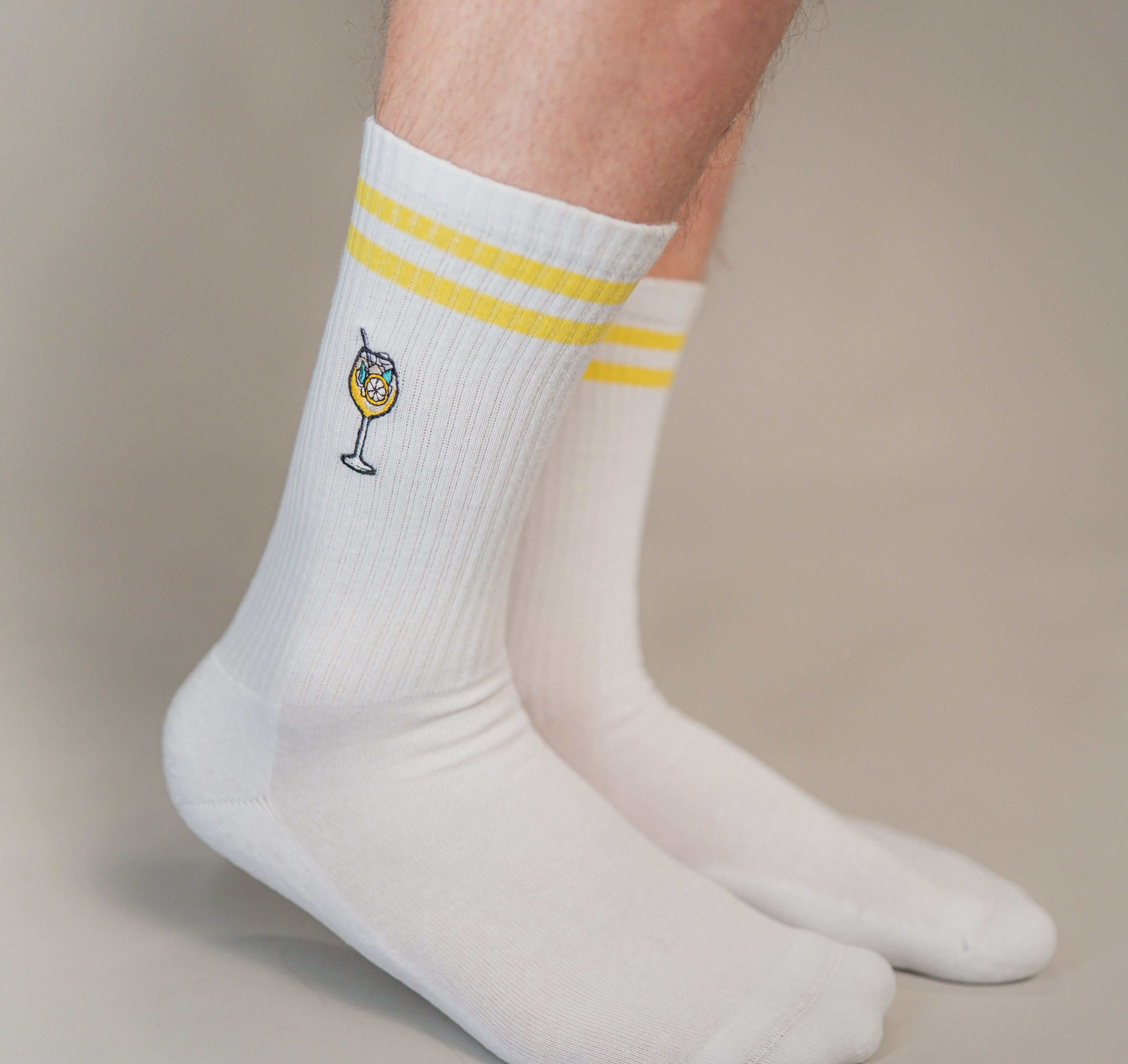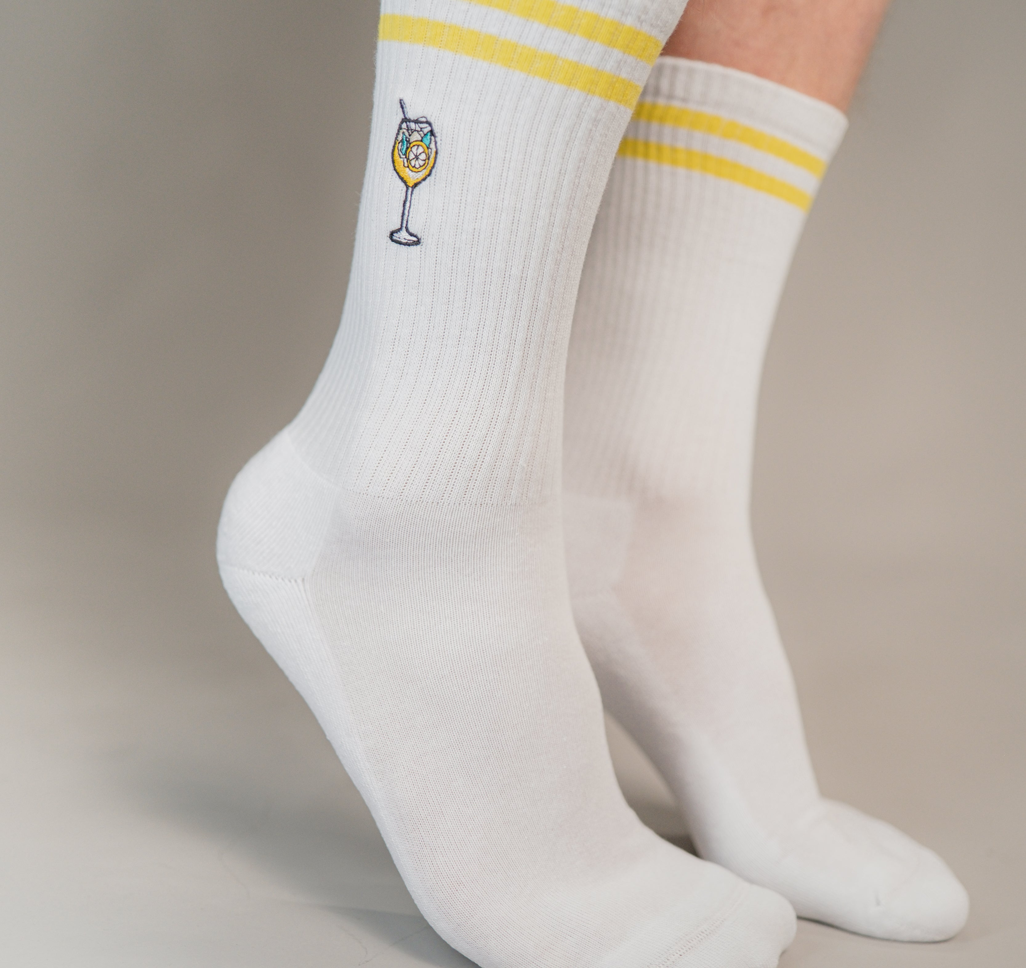 Wir sind nicht nur Mode – wir sind ein Lifestyle. Jedes Teil, das wir kreieren, ist inspiriert von ikonischen Getränken, gefertigt aus 100 % Bio-Baumwolle und bestickt mit hochwertigem, ökologischem Garn. Unsere Designs wie Aperol Spritz, Lillet Wildberry oder Jägermeister bestechen durch einen maximalen Detailgrad auf dezenter Größe auf Socken und anderen Textilien. Unser Fokus liegt auf Qualität, Authentizität und einer Leidenschaft für Kreativität.