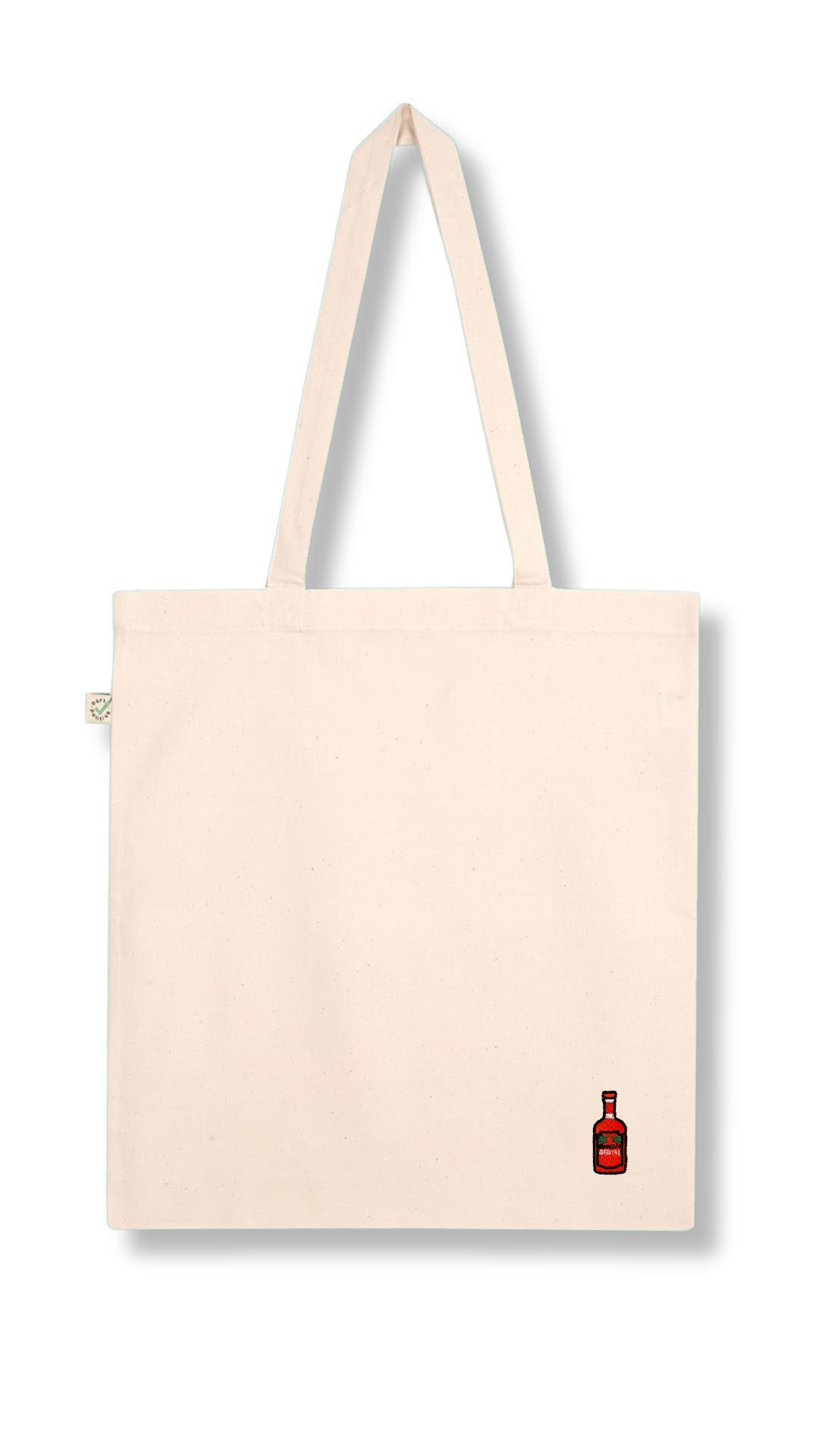 Bestickte, fair produzierte Bio-Baumwoll-Tragetasche im offiziellen Mionetto Aperitivo Design.