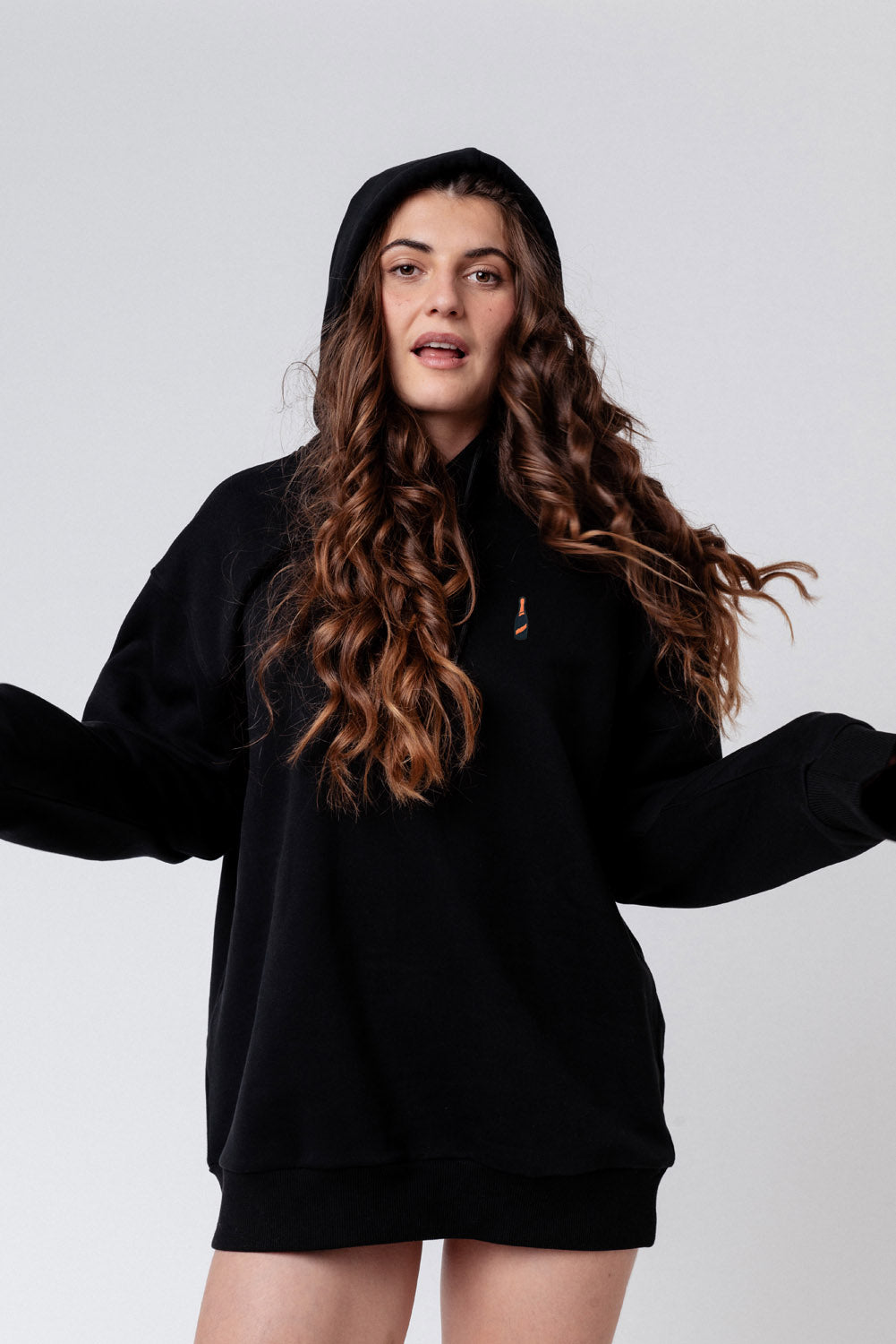 Super hochwertiger Bio Baumwoll Unisex Hoodie mit schwerem Stoff (350gsm) und der offiziell gestickten Mionetto Prosecco Flasche