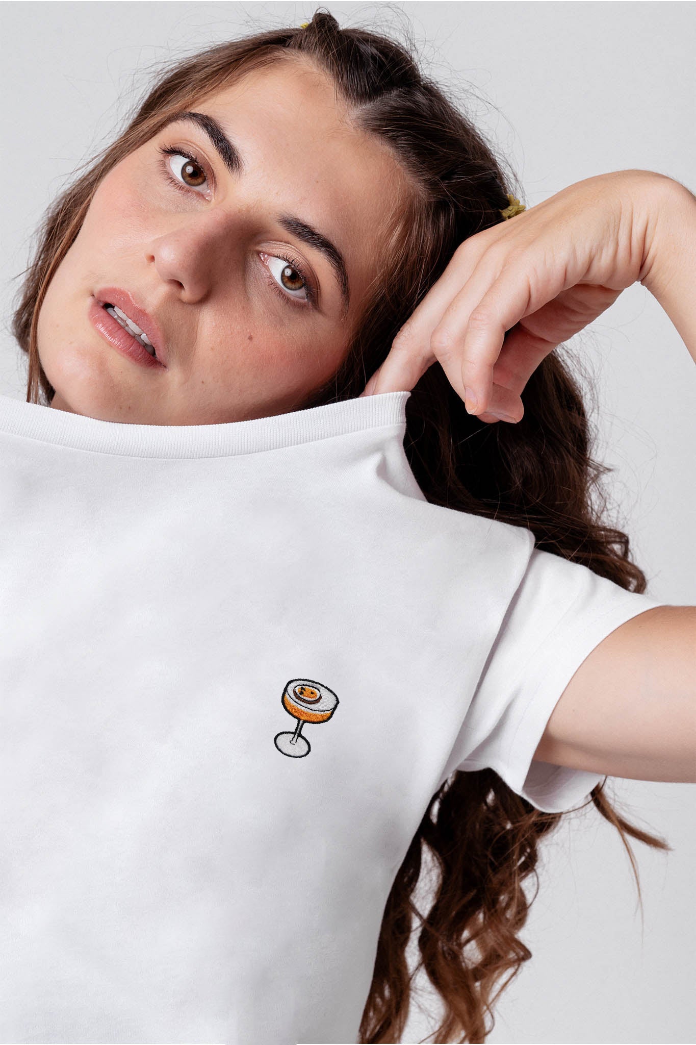Besticktes Bio Baumwoll Frauen T-Shirt mit extrem angenehmen Stoff (155gsm) und gesticktem Pornstar Martini Design