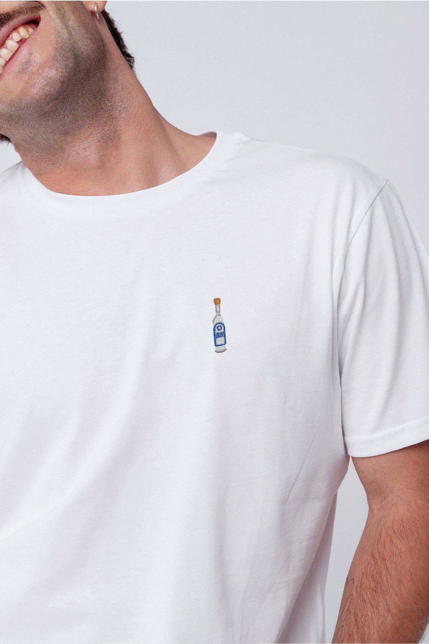 Besticktes Bio Baumwoll Unisex T-Shirt mit schwerem Stoff (190gsm) und gesticktem Ouzo Design