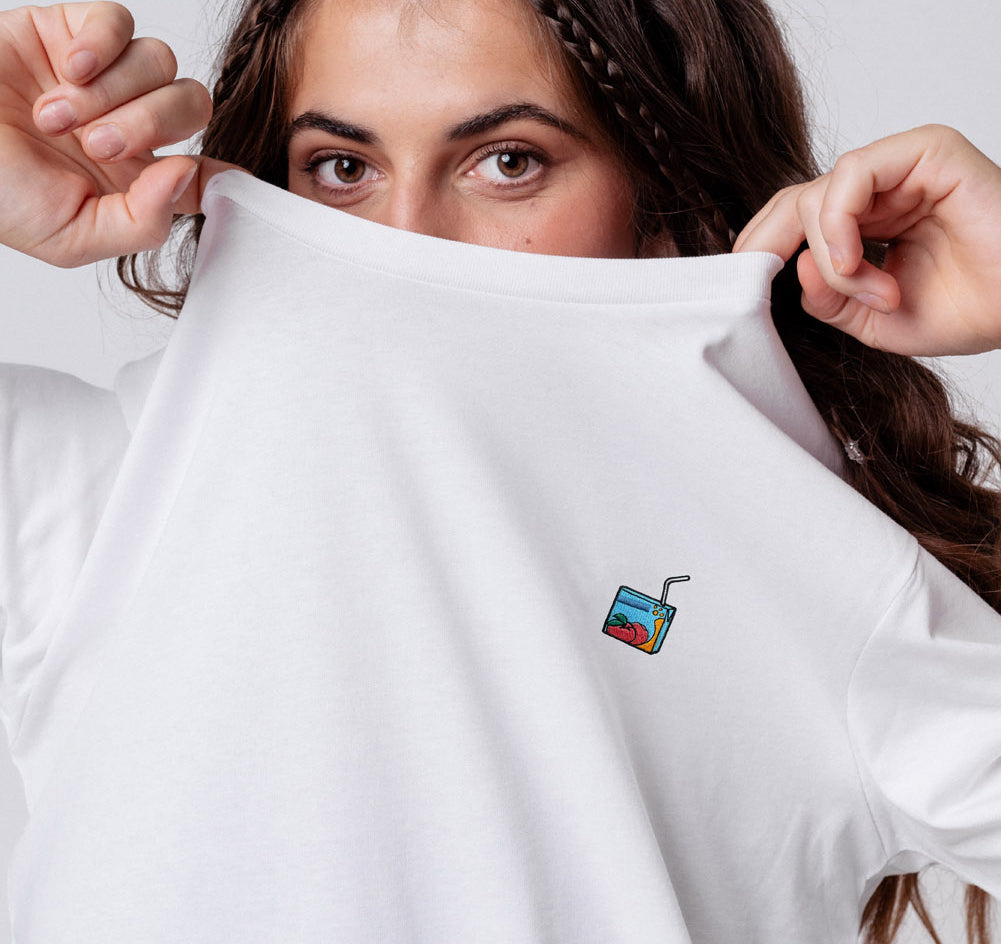 Jedes Design bei Fashion Drinks wird mit viel Liebe zum Detail handgezeichnet. Danach wird es sorgfältig auf unsere Stickmaschinen programmiert und übertragen. Während des Designprozesses führen wir im Schnitt 5-10 Probe-Stickvorgänge durch, um sicherzustellen, dass das Ergebnis 100% genau und perfekt ist. Unsere Spezialität ist die feine, detaillierte Stickerei im Bereich von 4-5 cm, auf die wir besonders stolz sind. So garantieren wir, dass jedes T-Shirt ein einzigartiges Kunstwerk ist, das höchste Qualität bietet.
