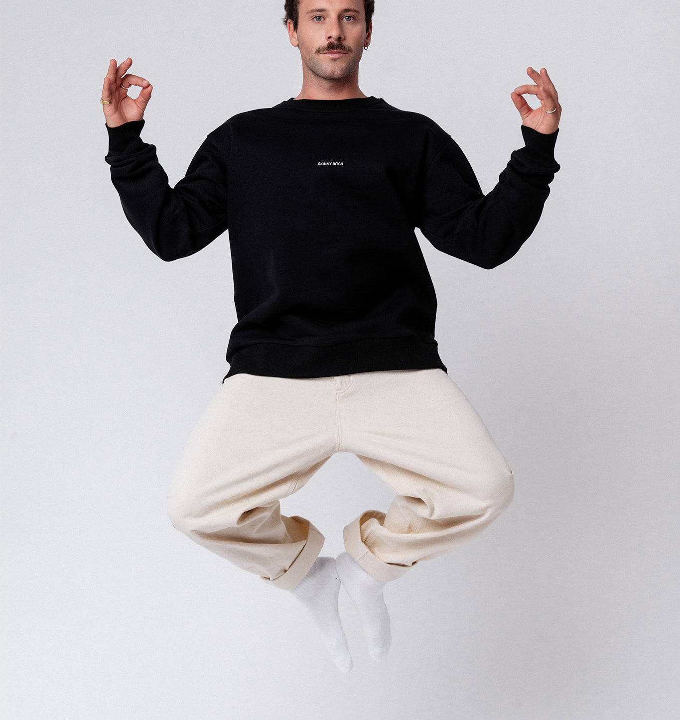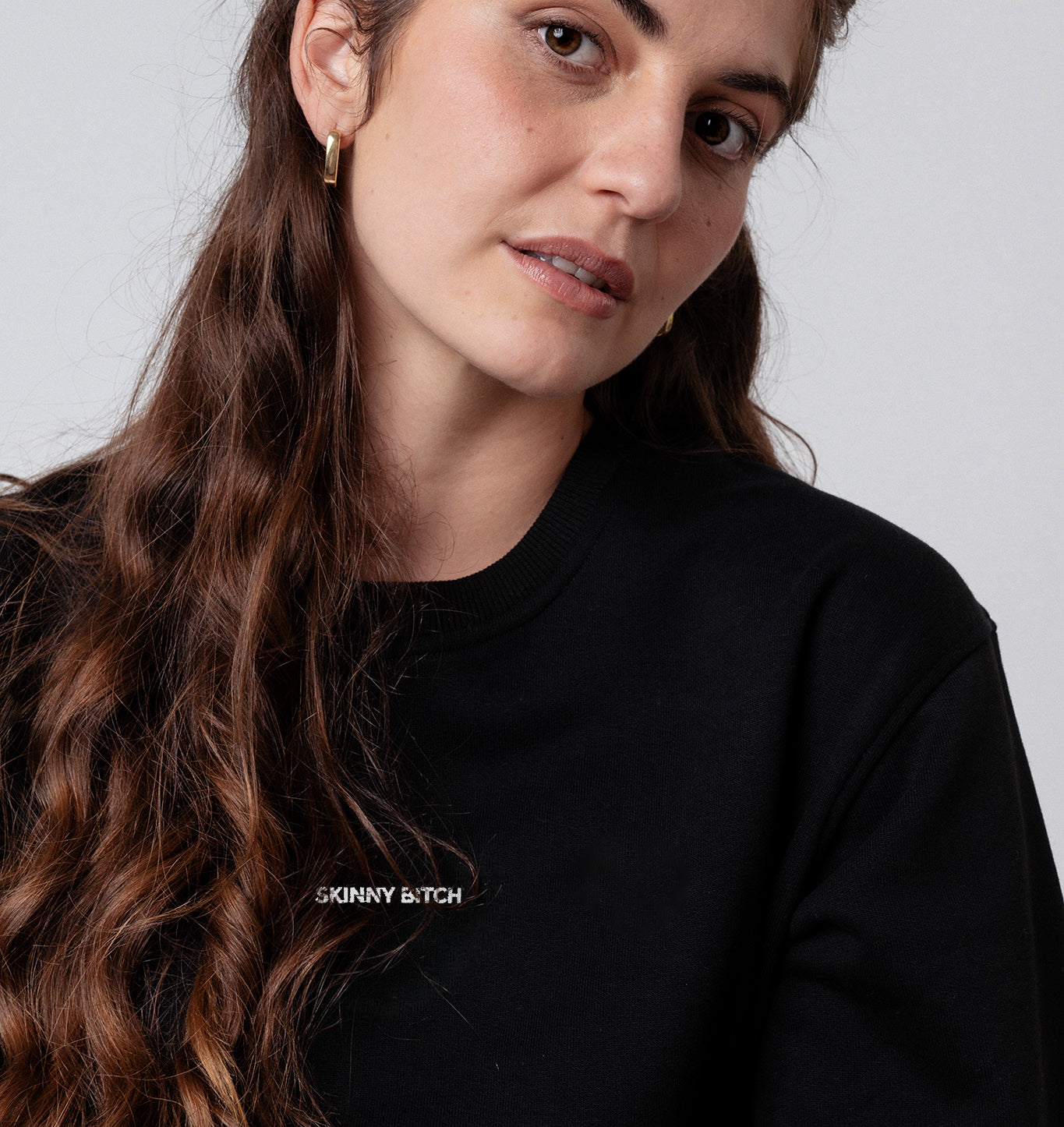 Bestickter Bio Baumwoll Unisex Pullover mit schwerem Stoff (320gsm) und gesticktem SKINNY BITCH Schriftzug