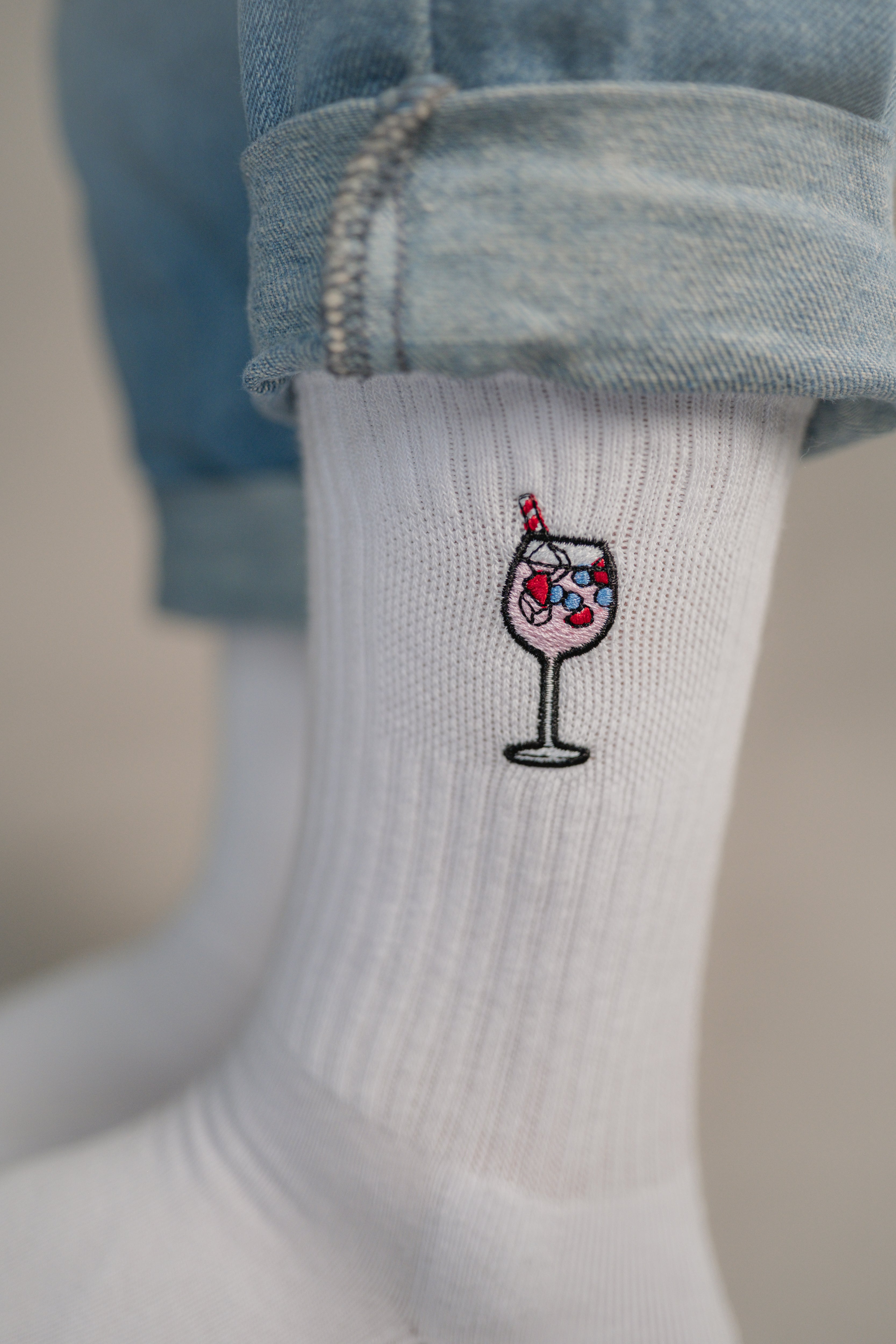 Die Stickerei auf unseren Fashion Drinks Socken bleibt auch nach mehrmaligem Waschen in einwandfreier Form. Wir verwenden präzise Industriemaschinen, die speziell für feine, detaillierte Stickarbeiten entwickelt wurden. So bleibt die Stickerei stabil und die Socken behalten ihre Form. Um die Qualität zu erhalten, empfehlen wir, die Socken bei niedrigen Temperaturen zu waschen und sie auf links zu drehen.