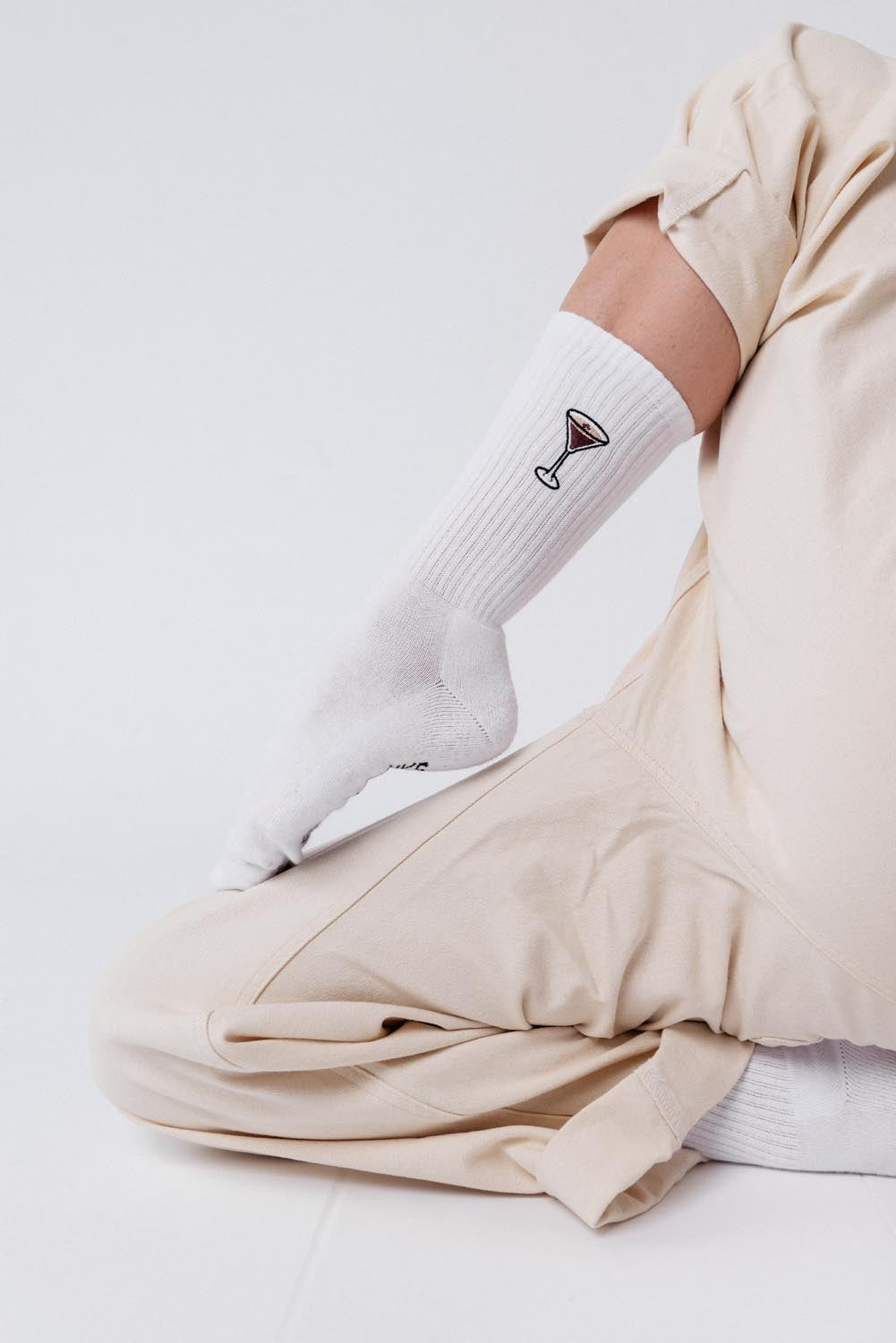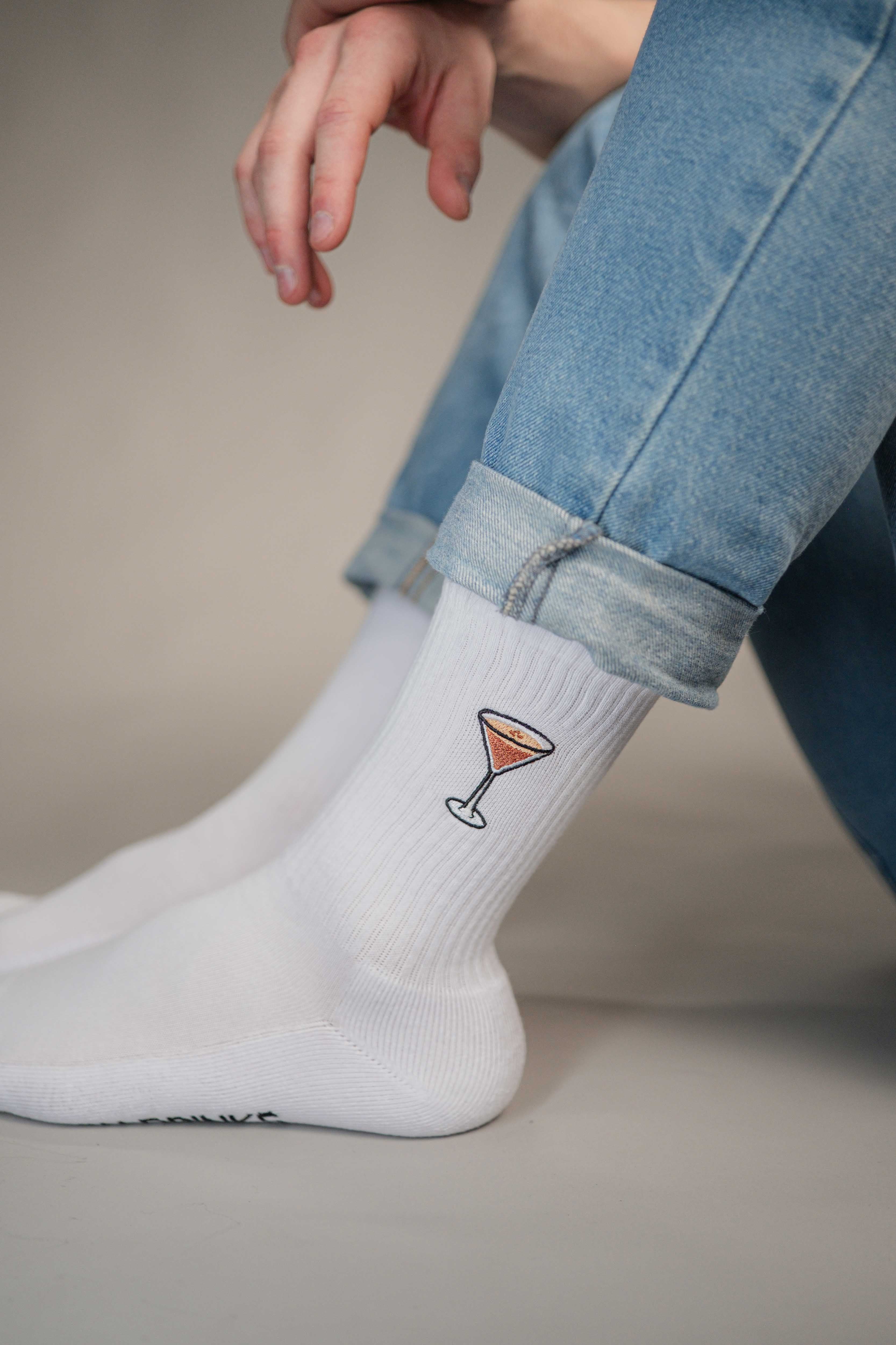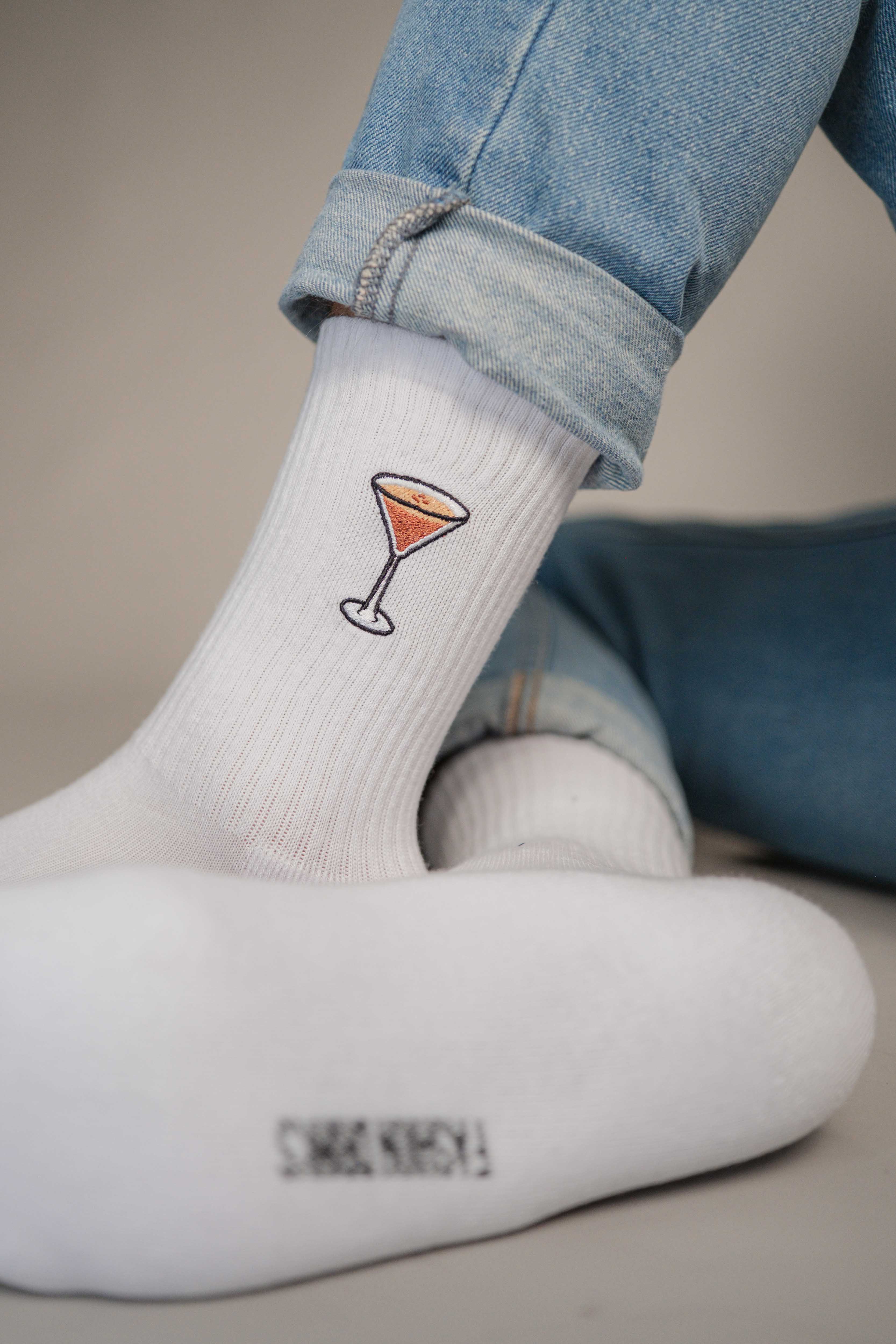 Super hochwertige Bio Baumwoll Crew Socken mit gesticktem Espresso Martini Design