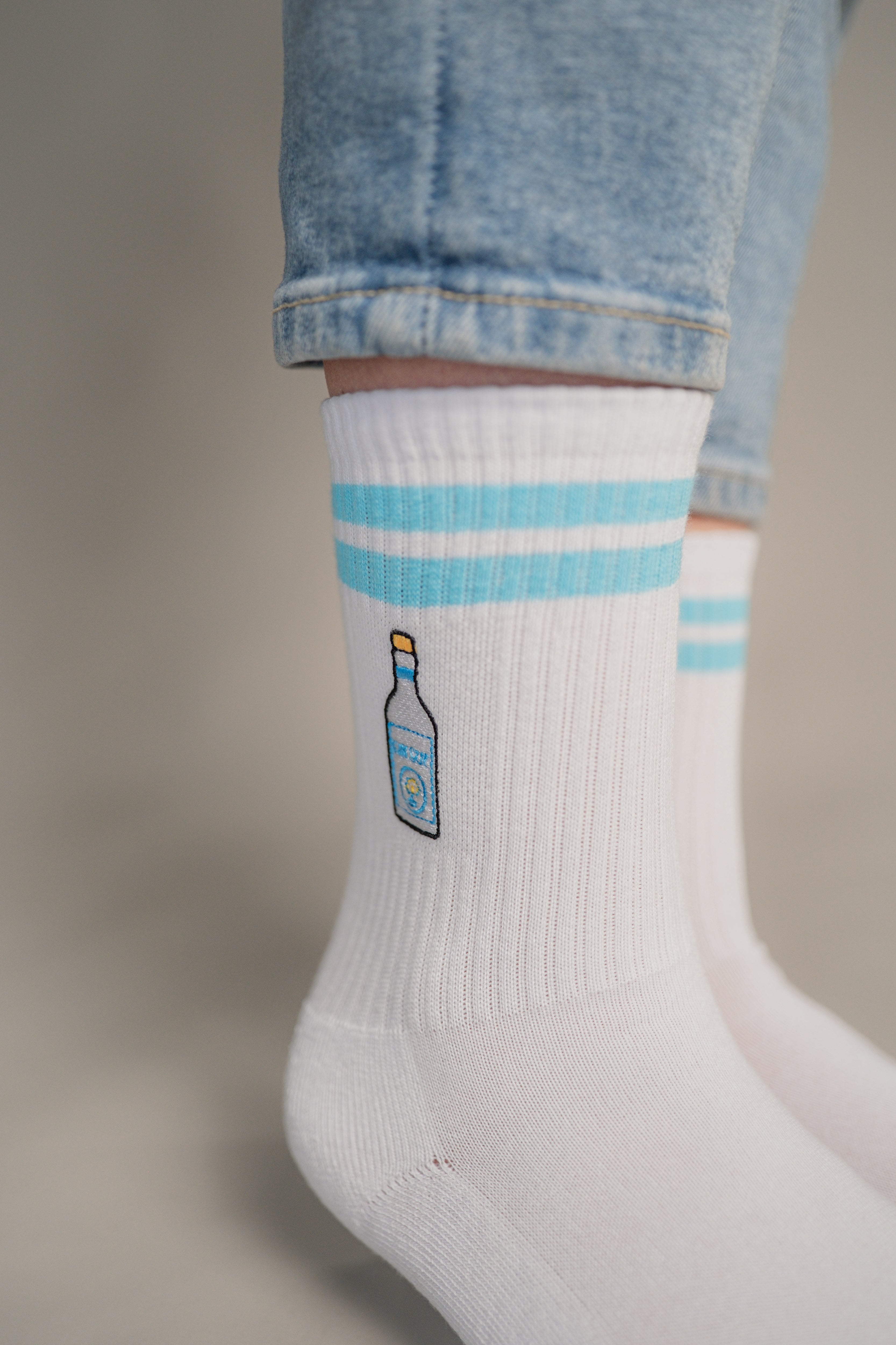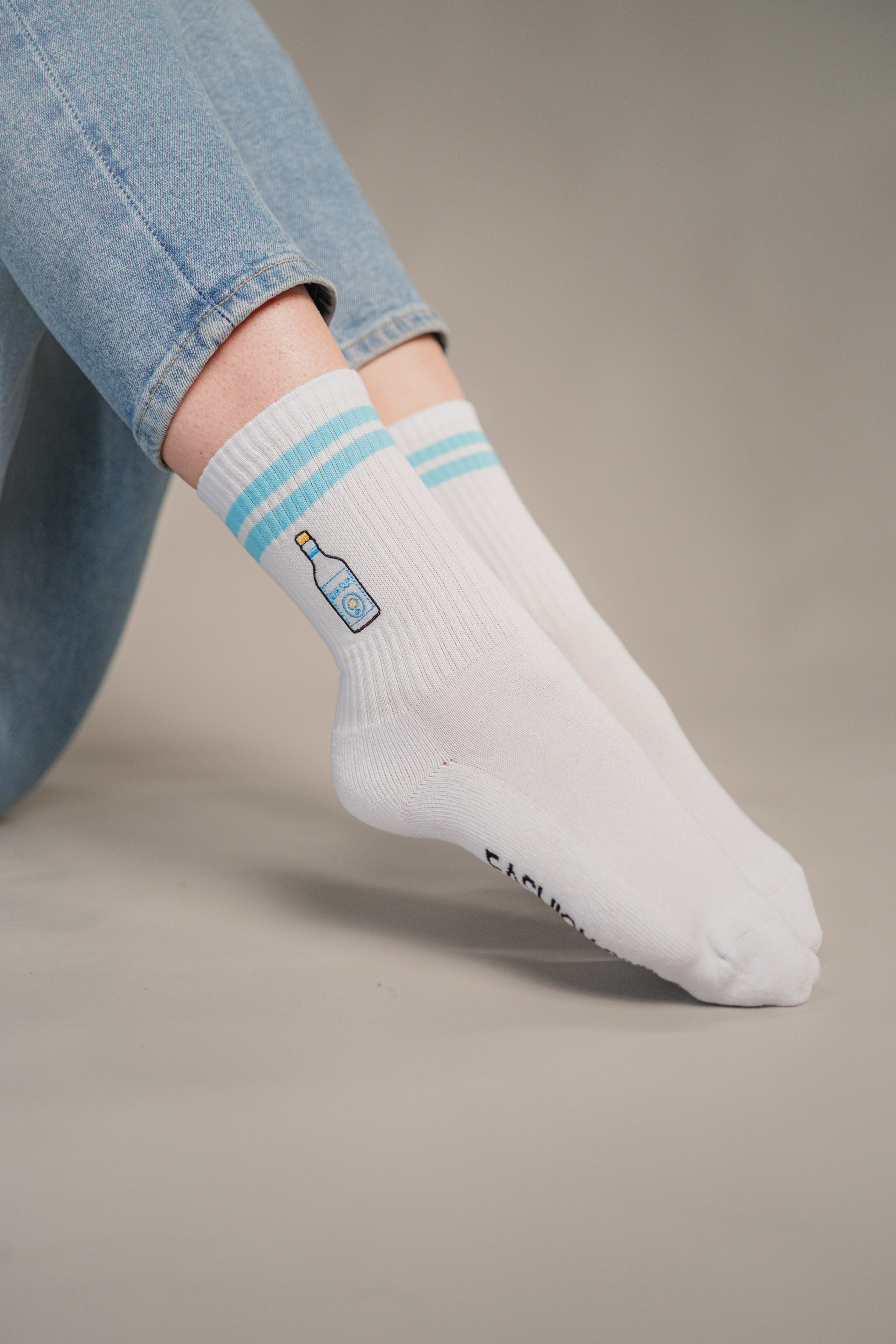 Super hochwertige Bio Baumwoll Crew Socken mit offiziell gesticktem GIN SUL Design
