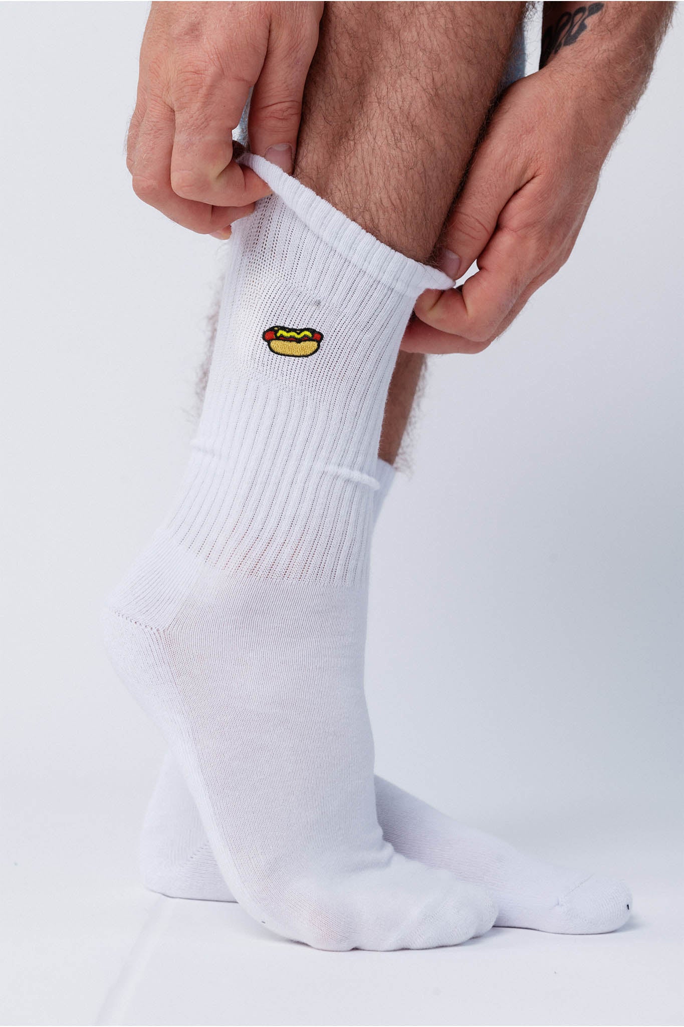 Super hochwertige Bio Baumwoll Crew Socken mit gesticktem Hot Dog Design
