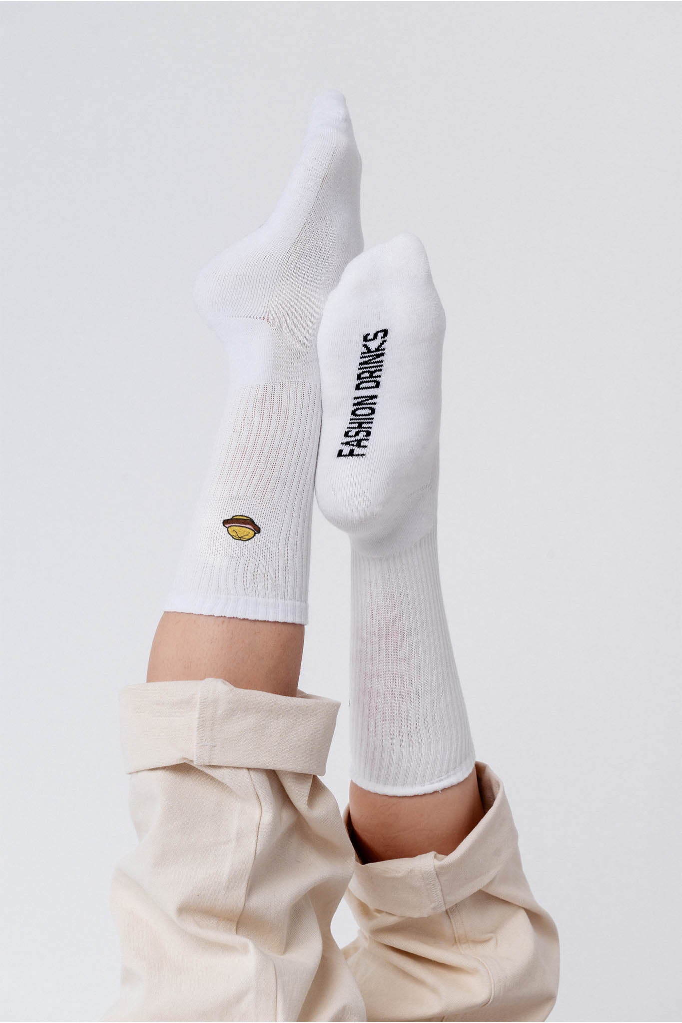 Die Stickerei auf unseren Fashion Drinks Socken bleibt auch nach mehrmaligem Waschen in einwandfreier Form. Wir verwenden präzise Industriemaschinen, die speziell für feine, detaillierte Stickarbeiten entwickelt wurden. So bleibt die Stickerei stabil und die Socken behalten ihre Form. Um die Qualität zu erhalten, empfehlen wir, die Socken bei niedrigen Temperaturen zu waschen und sie auf links zu drehen.