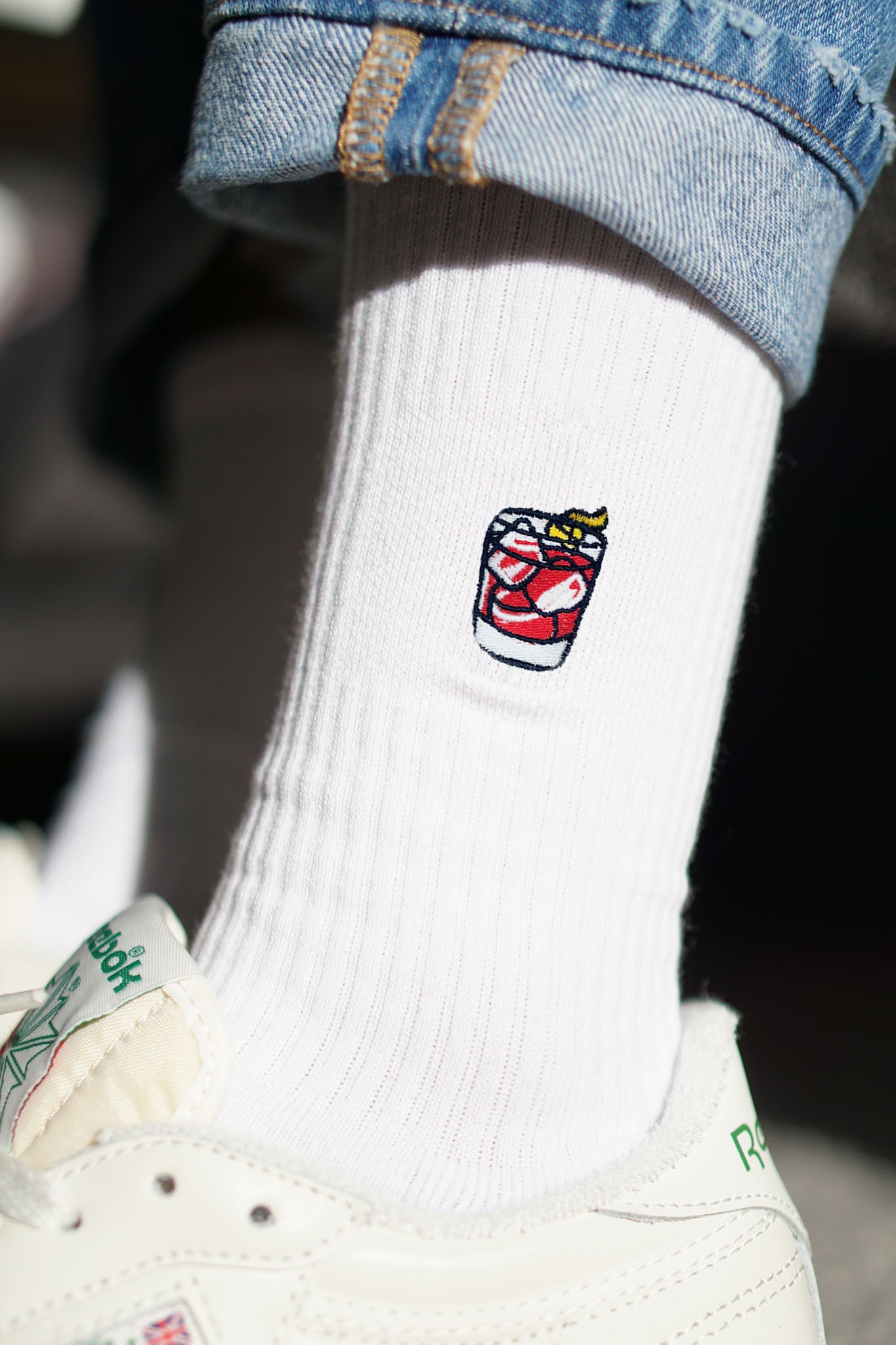 Super high-quality organic cotton crew socks with embroidered Negroni design