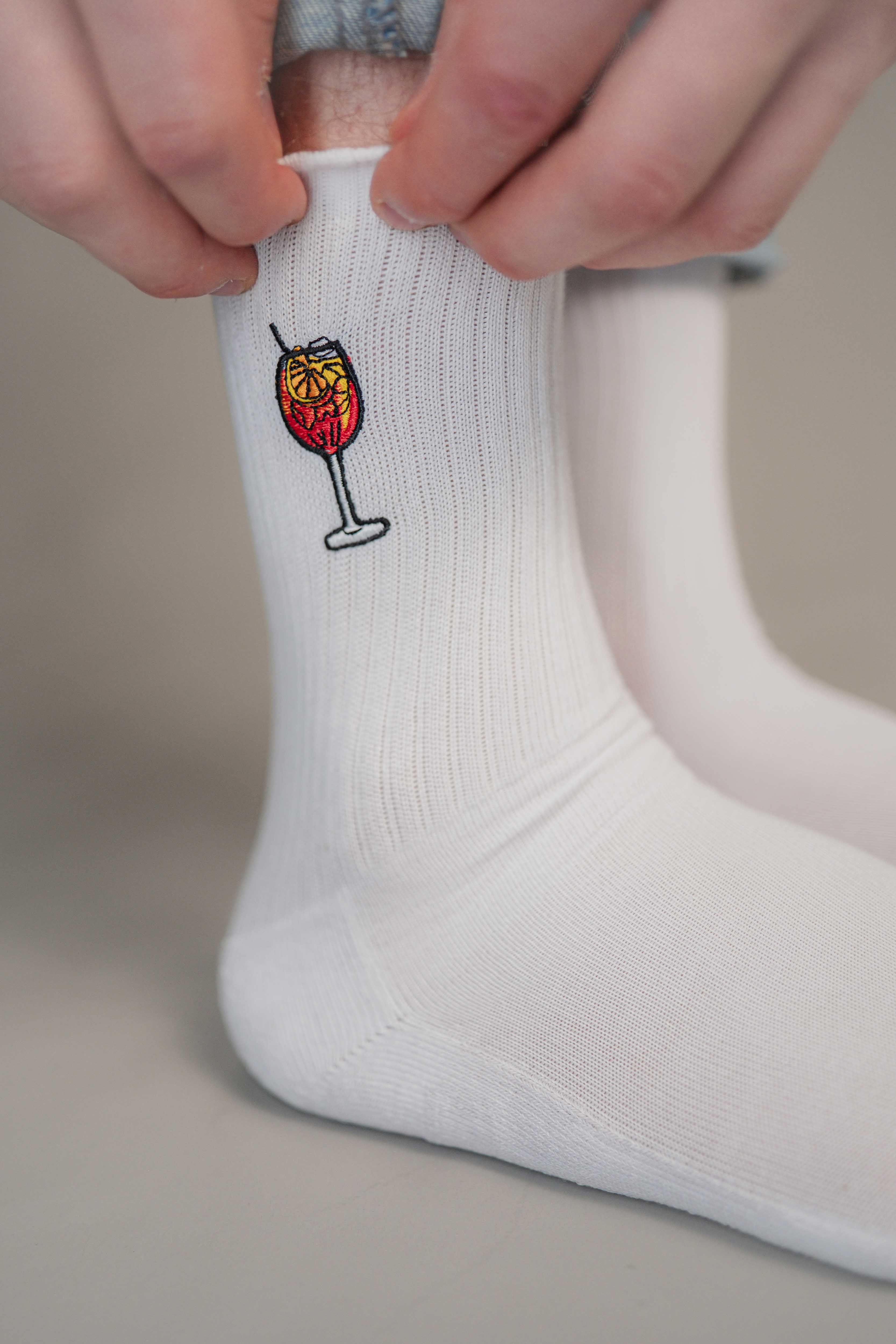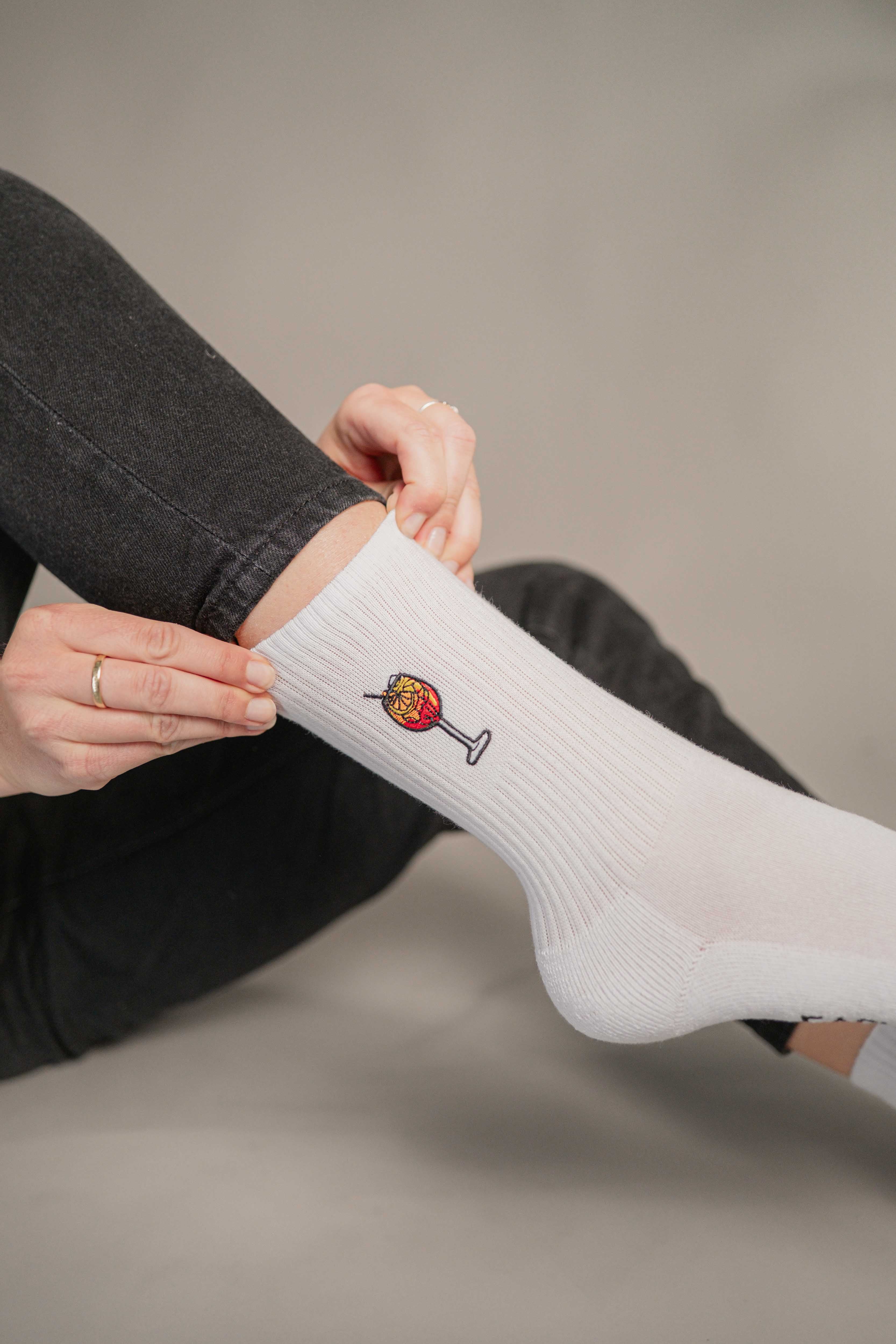 Unsere Socken sind nicht nur stylisch, sondern auch das perfekte Geschenk für deine Liebsten. Mit einzigartigen Designs, die die beliebtesten Drinks wie Aperol Spritz, Lillet Wildberry und Jägermeister repräsentieren, sind unsere Socken immer ein Hit – sei es zum Geburtstag, Junggesellenabschied oder auch als Weihnachtsgeschenk. Jeder kennt doch jemanden, der einen bestimmten Lieblingsdrink hat – mit diesen Socken kannst du ihn garantiert glücklich machen!
