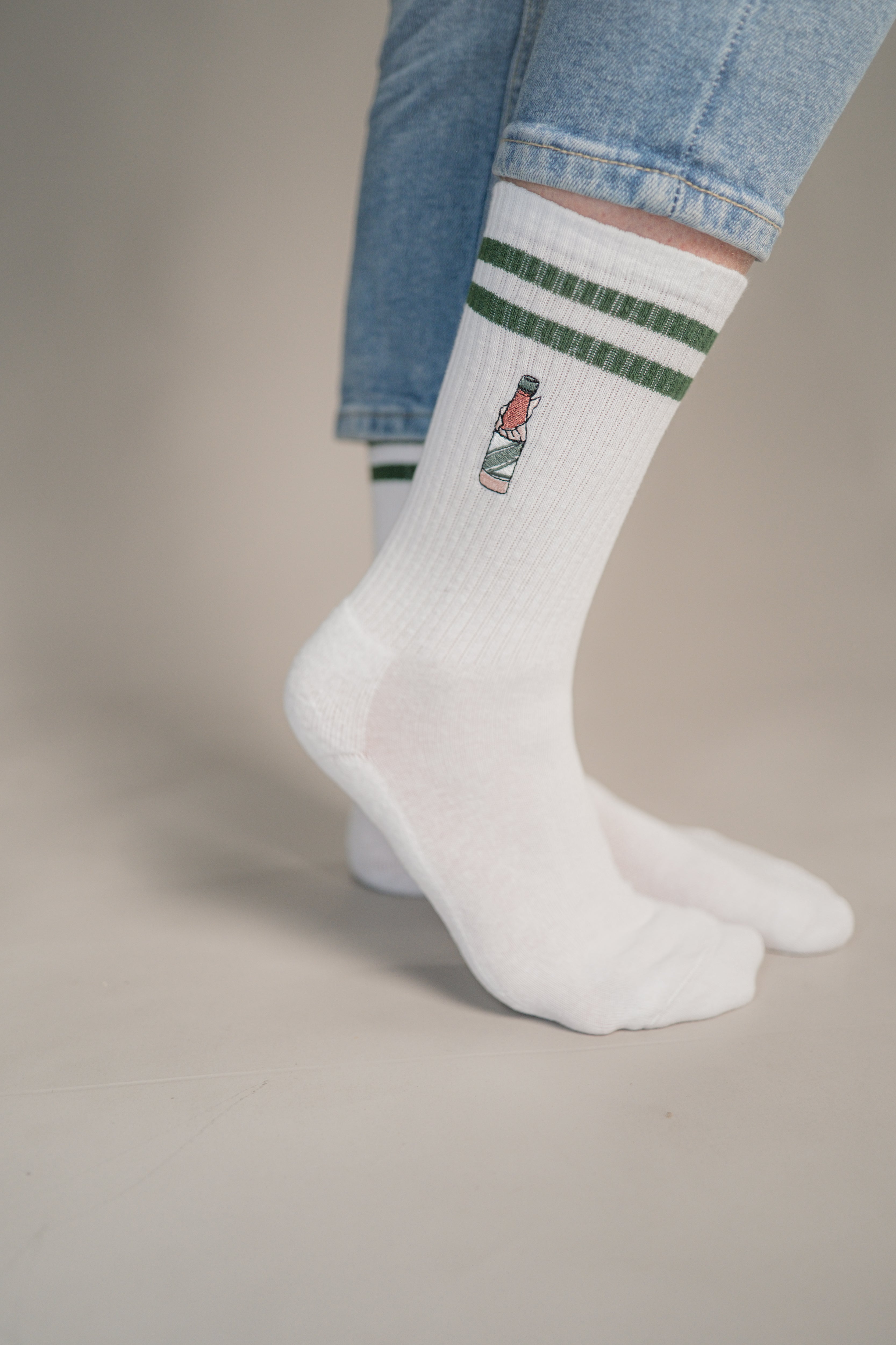 Fashion Drinks bietet eine einzigartige Kombination aus exklusiven, handgezeichneten Designs, hoher Qualität und Nachhaltigkeit. Nur bei uns findest du Socken mit extrem detaillierter Stickerei. Unsere Socken, darunter beliebte Marken wie Underberg, Bionade und Früh Kölsch, sind aus 80 % zertifizierter Bio-Baumwolle gefertigt. Sie bieten nicht nur ein tolles Tragegefühl, sondern auch schnellen Versand – ideal für jede Gelegenheit! Wir arbeiten mit über 30 Partnern aus der Getränkeindustrie zusammen und bieten exklusive, offizielle Designs, die du nur bei uns findest.