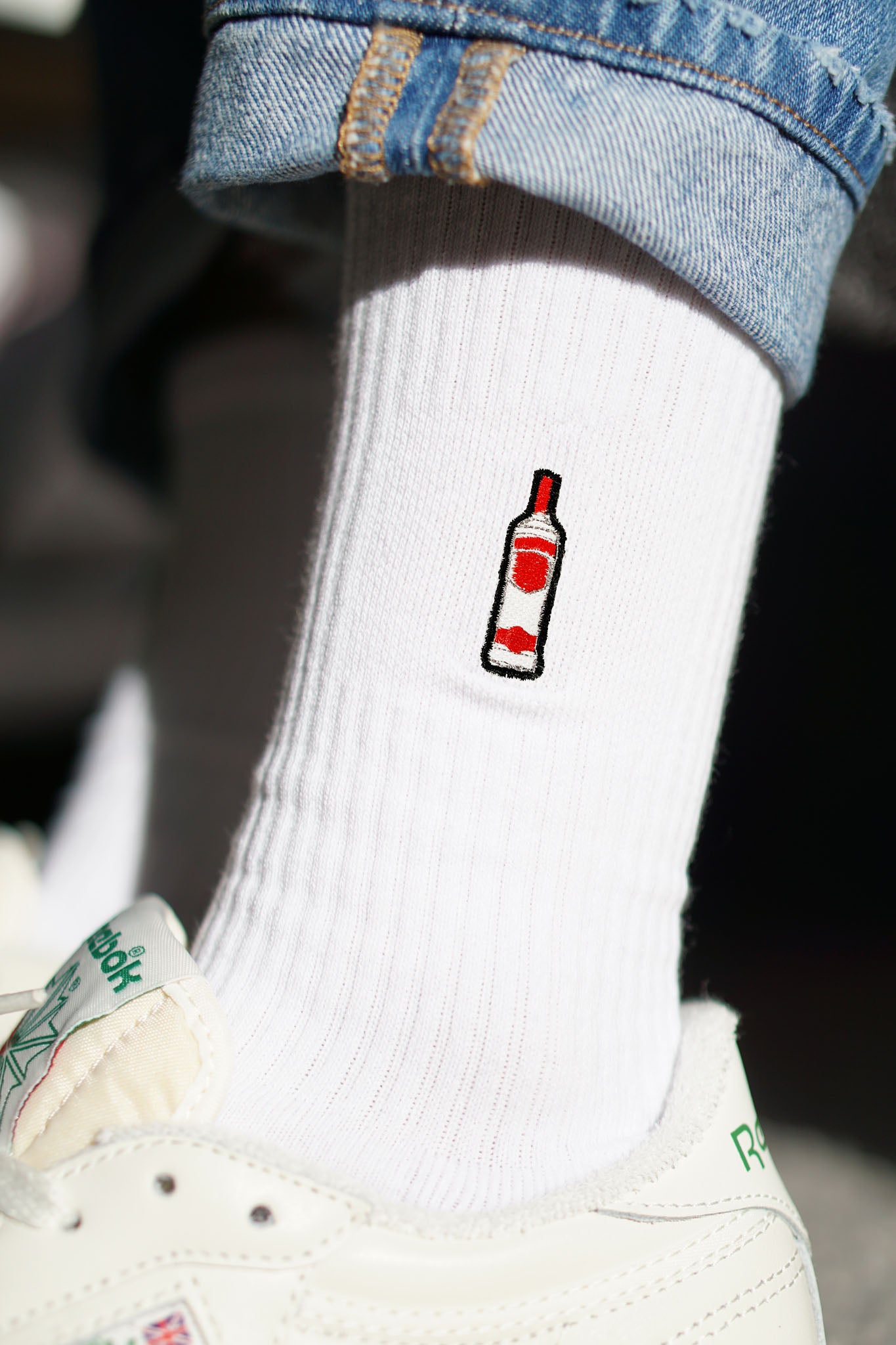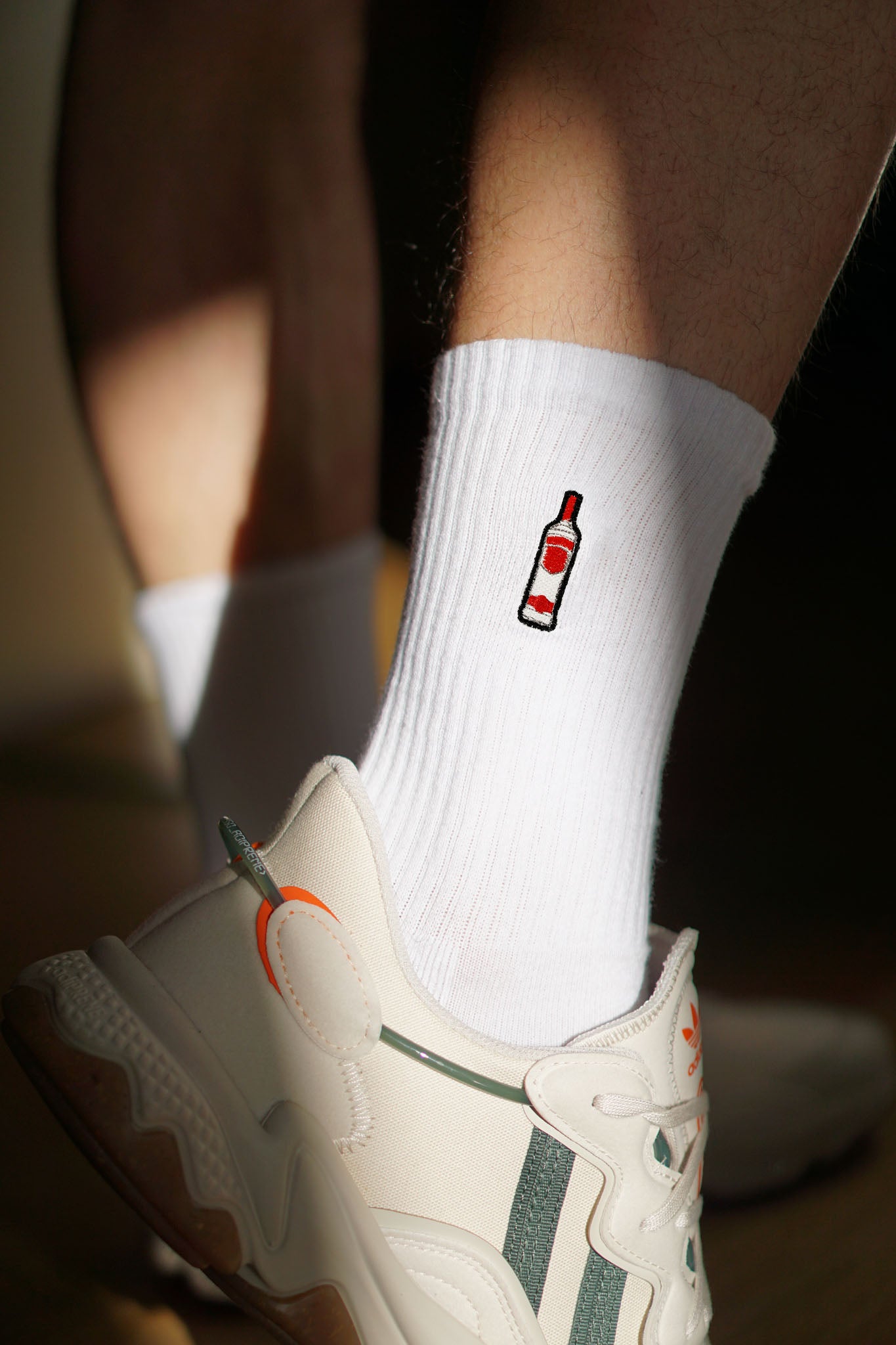 Super high-quality organic cotton crew socks with embroidered vodka design