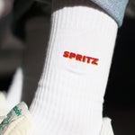Super high-quality organic cotton crew socks with embroidered Spritz lettering