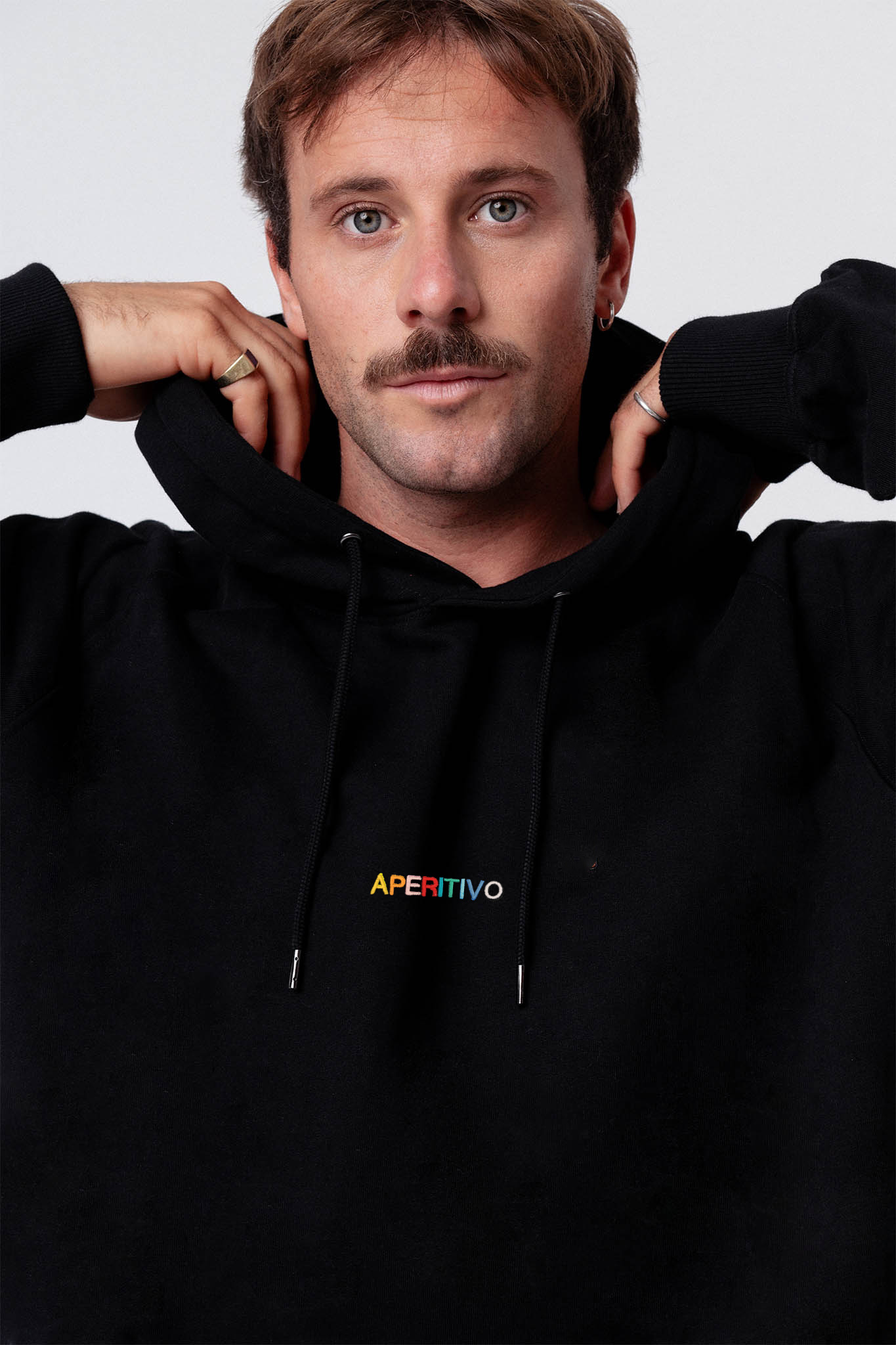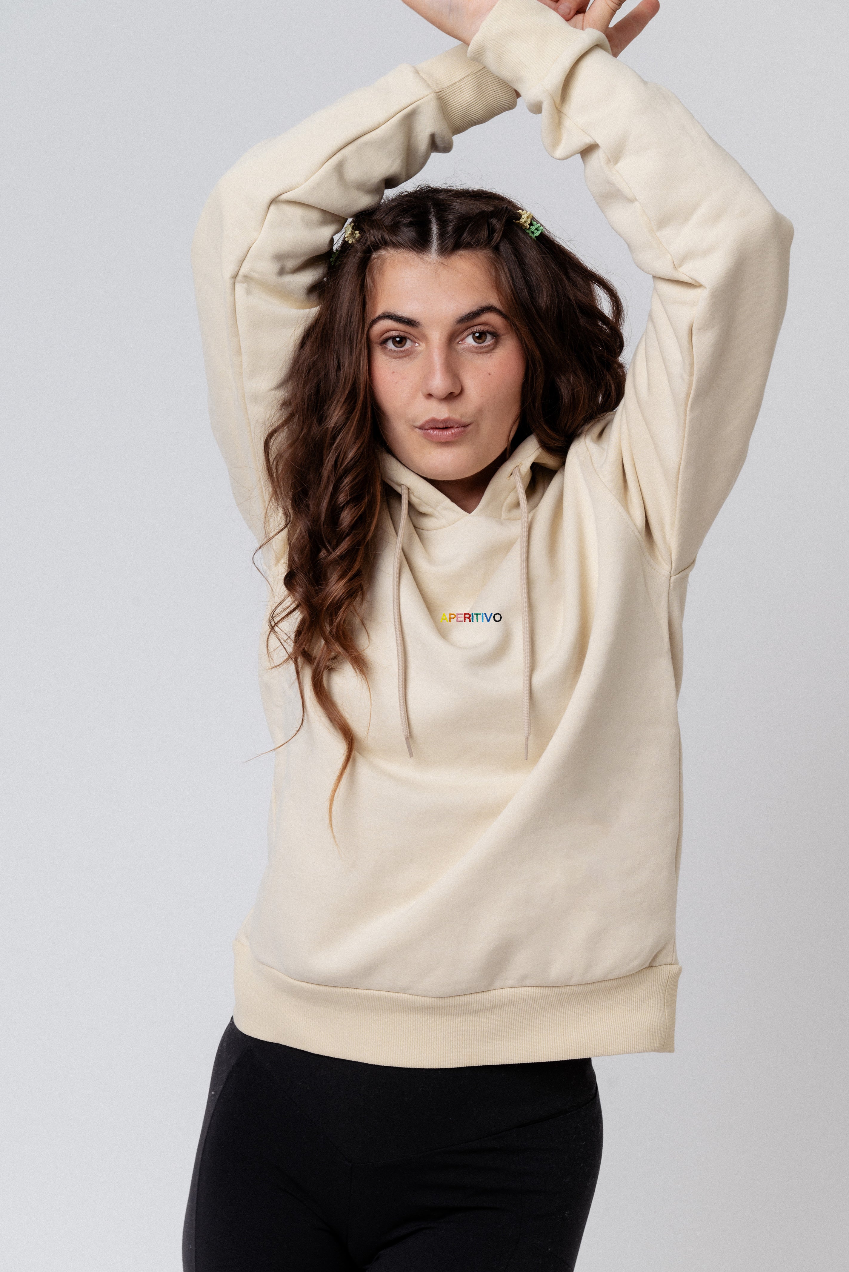 Super hochwertiger Bio Baumwoll Unisex Hoodie mit schwerem Stoff (350gsm) und gesticktem Aperitivo Schriftzug