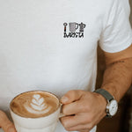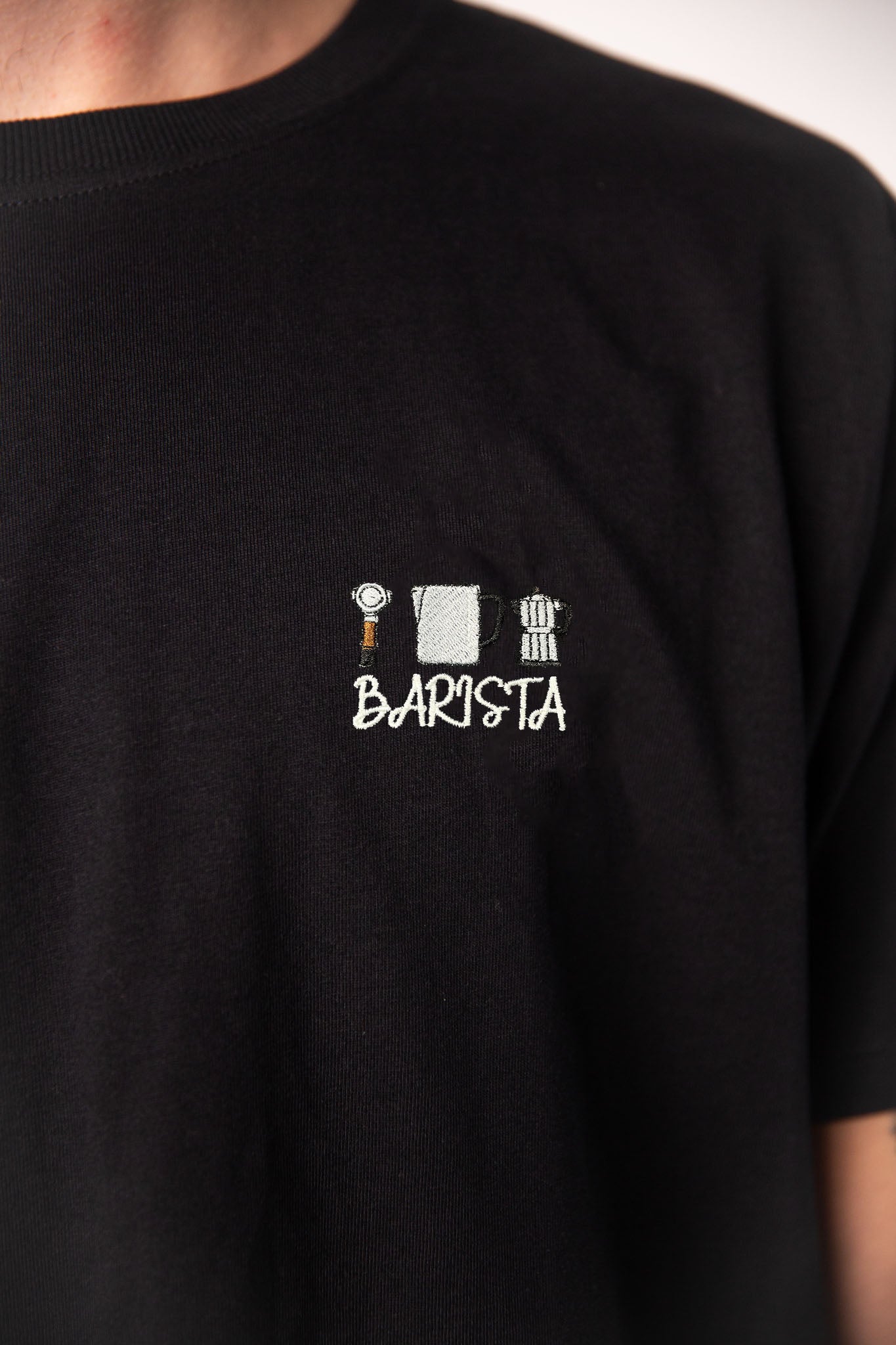 Super hochwertiges Bio Baumwoll Unisex T-Shirt mit schwerem Stoff (190gsm) und gesticktem Barista Set Design