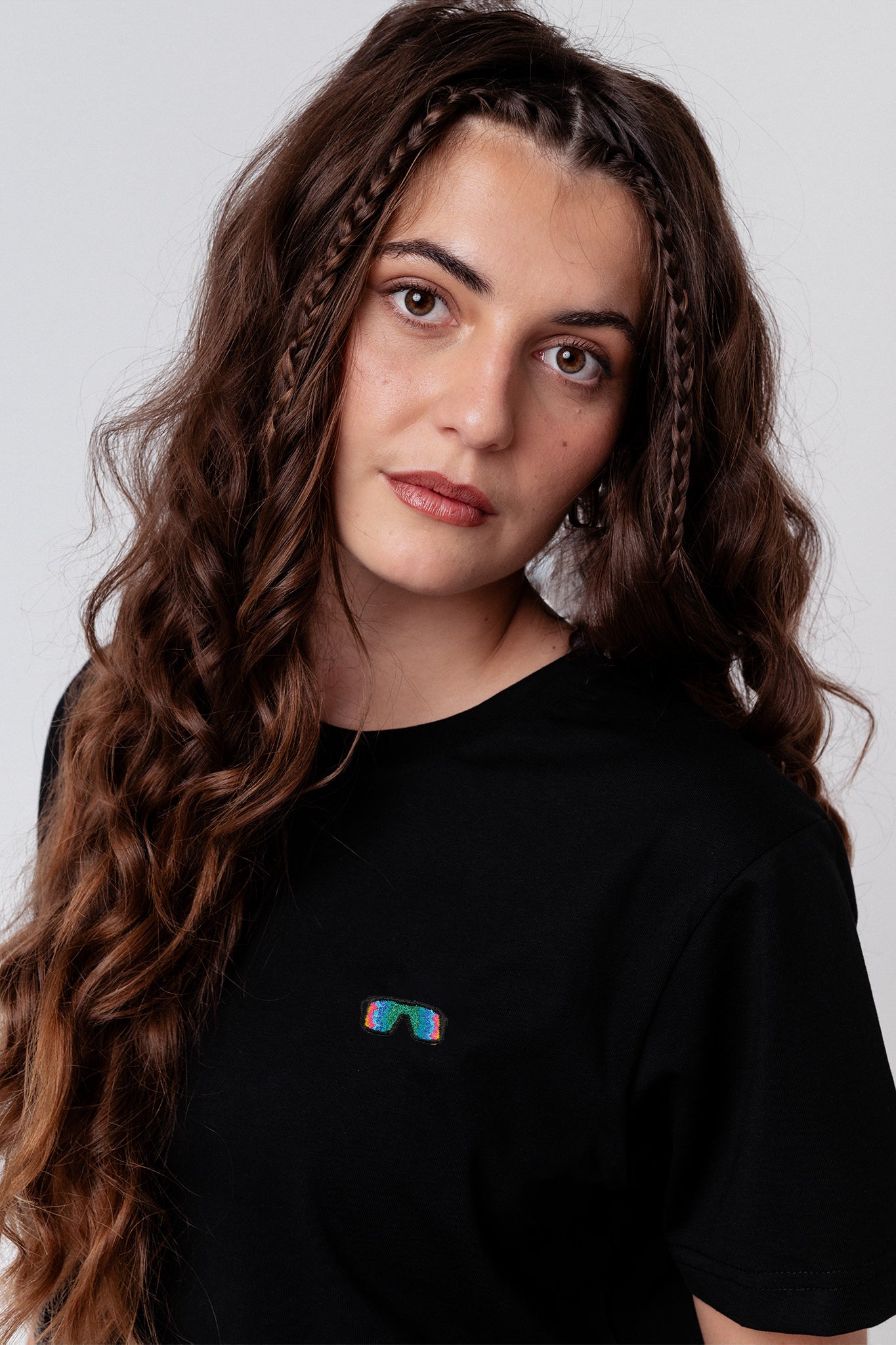 Besticktes Bio Baumwoll Unisex T-Shirt mit schwerem Stoff (190gsm) und gesticktem schnelle Brille Design